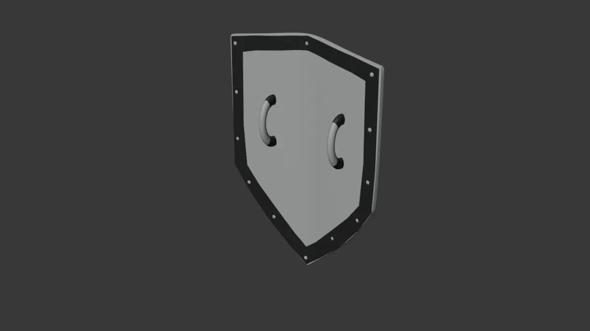 The shield’s metallic rivets enhance its durability and provide a bold, reinforced look. Its weight and thickness make it perfect for defense scenarios, offering a realistic representation for games or animations.