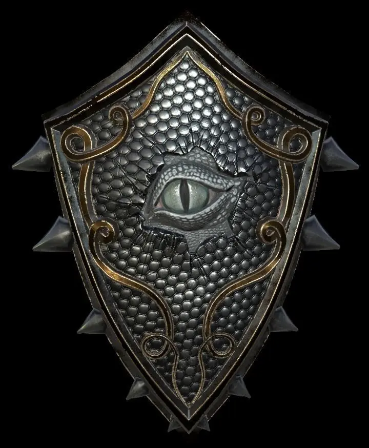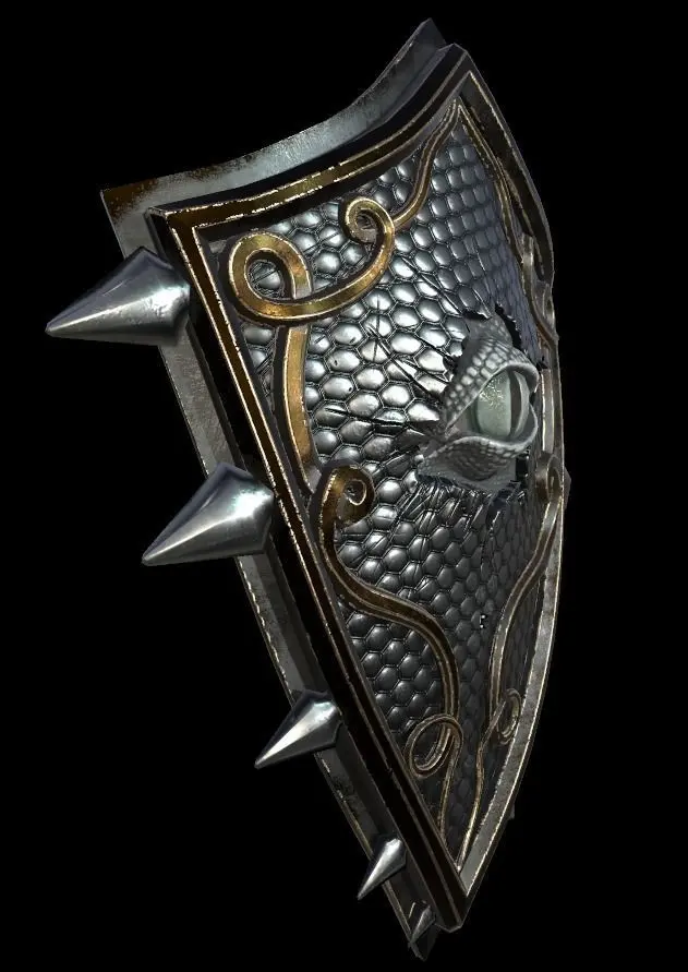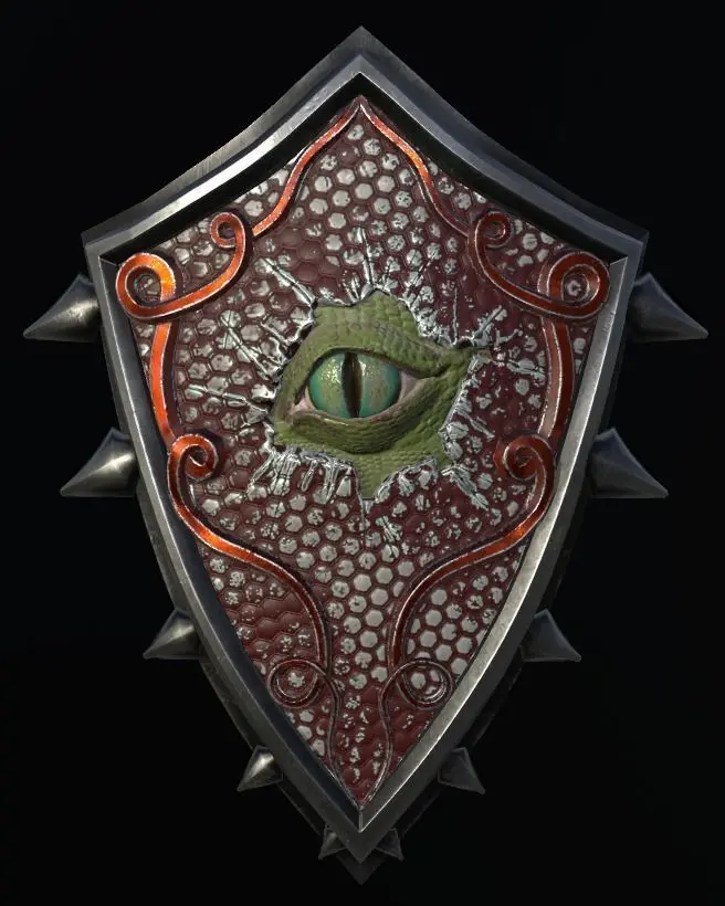 Low poly model shield with eye obj, fbx - 6136 polygons. (+ high poly model 3666998 polygons.)6 texture options: black, blue, bronze_black, green, orange, red.PBR textures-Metallic Roughness.Texture resolution is 2048x2048, PNG format.Render Marmoset Toolbag 3 light settings files are present.