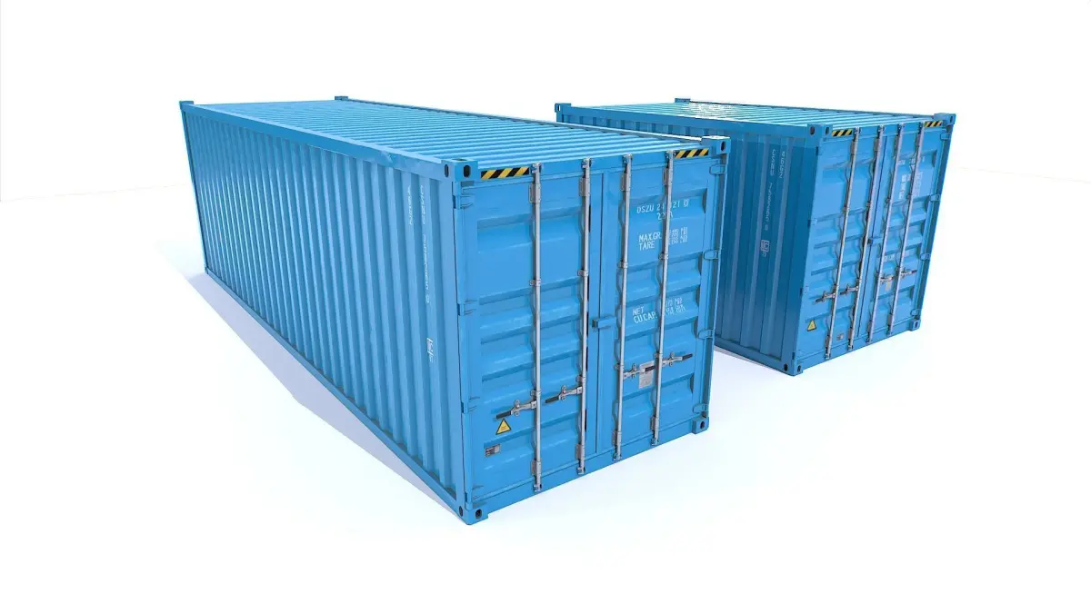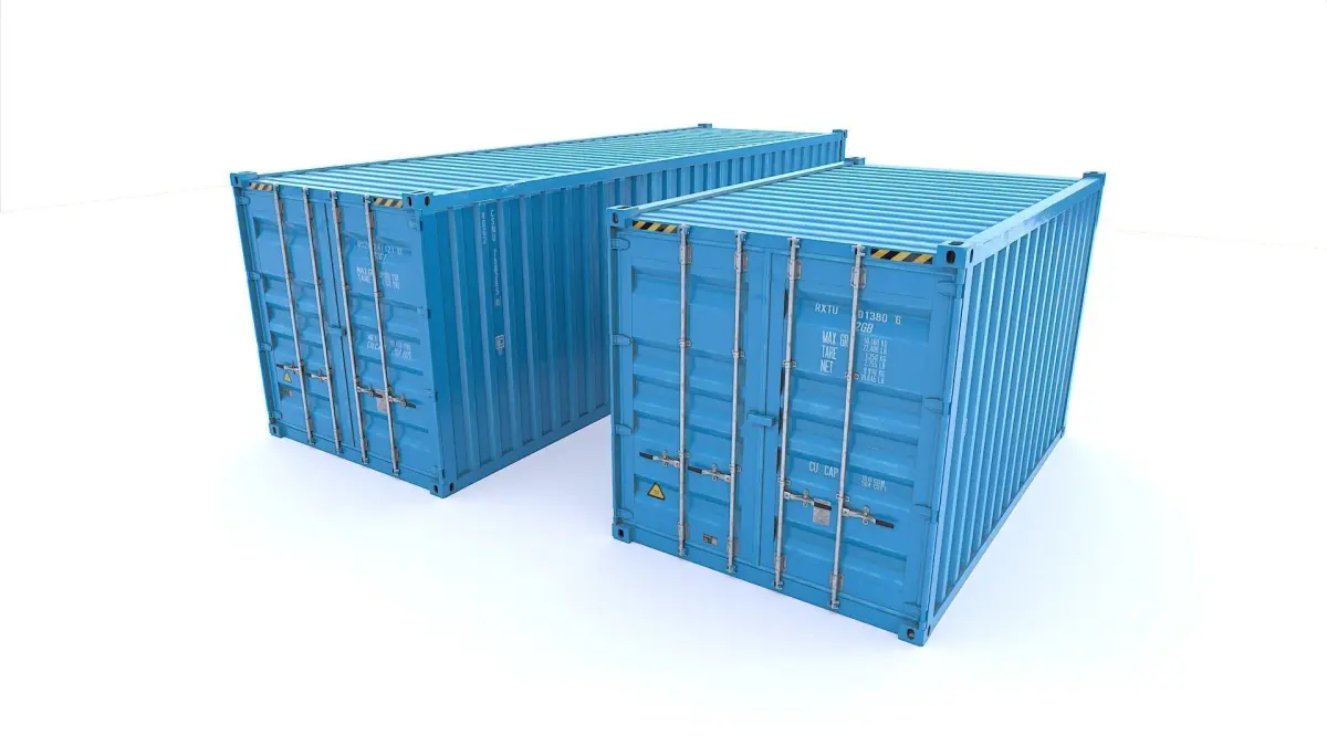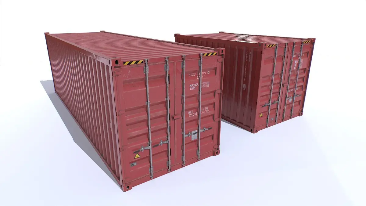 Realistic set of industrial containers. 2 fully closed with 3 materials and 2 with openable doors with 5 materials for a total of 5 materials and 8 objects.