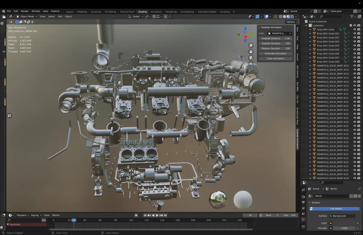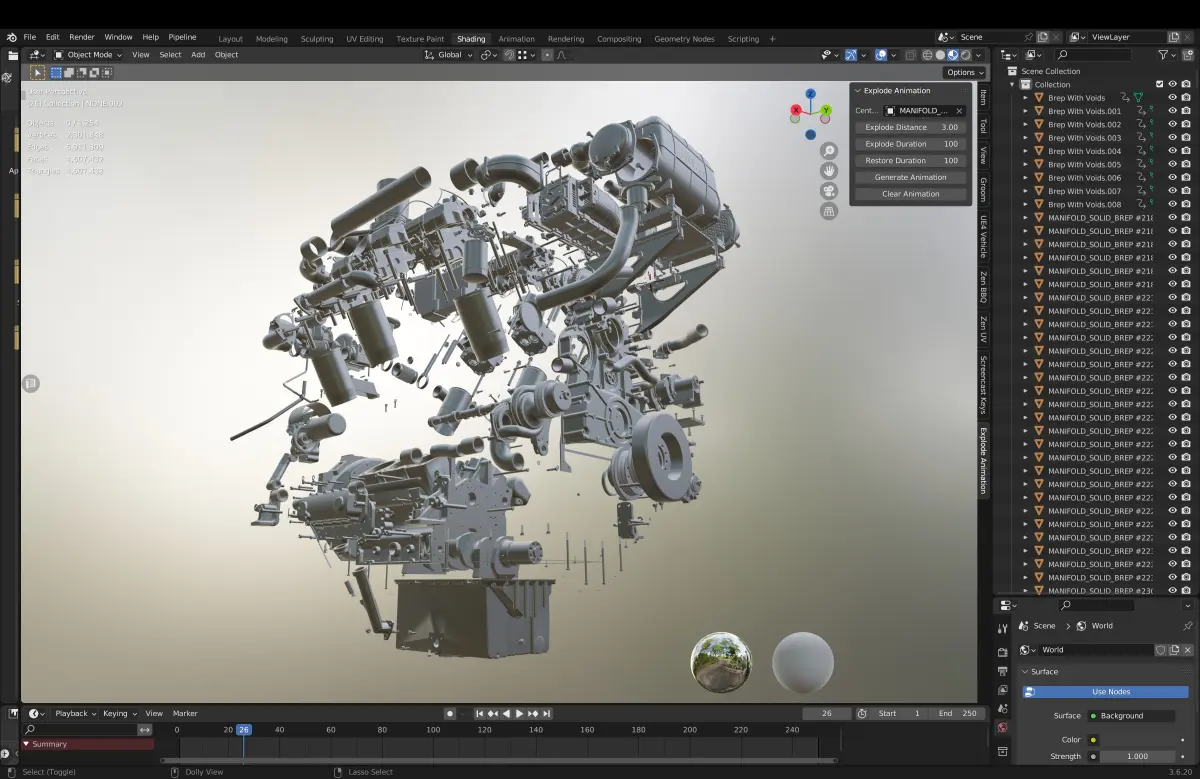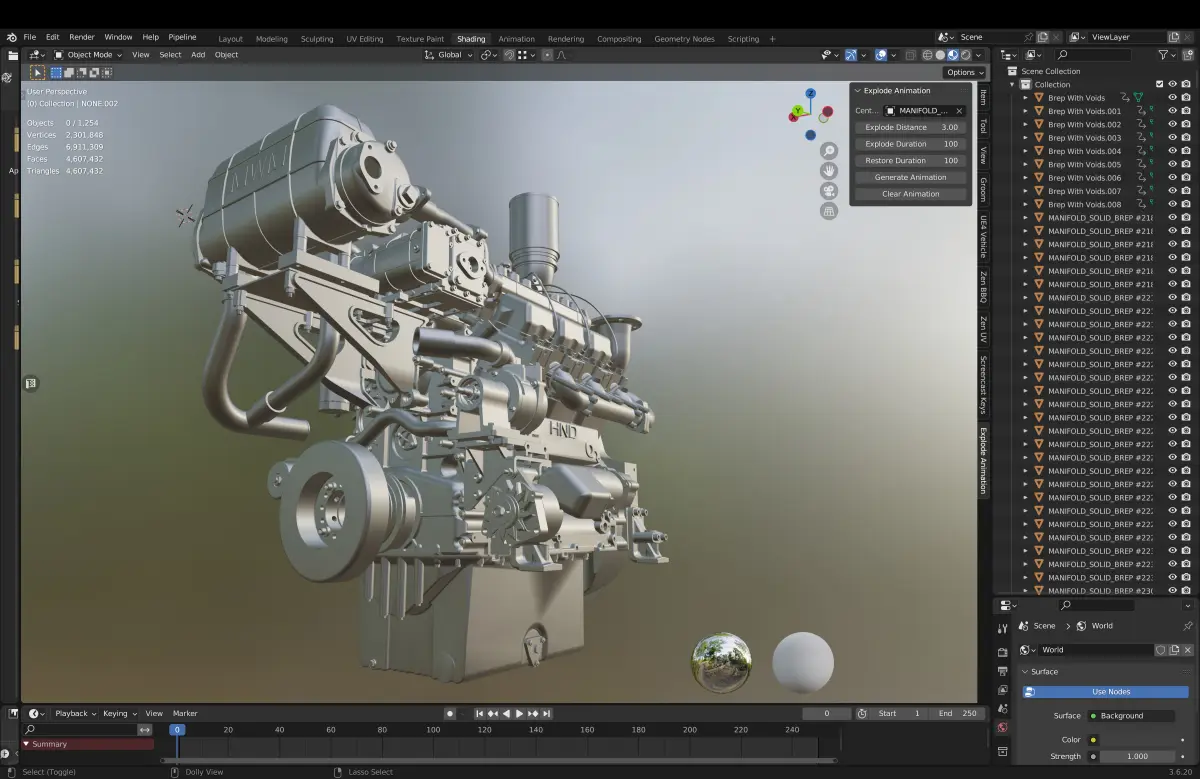 High detailed 3D ship engine model is originally created in Blender 3.6, with explode animation.
