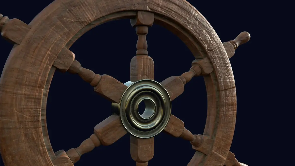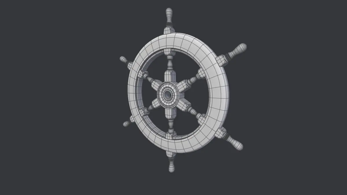 a Lowpoly game ready PBR 3D model of a Ship navigation wheel. Originally modeled in C4D. UV mapped. Textures included in 4K resolution all in one single material