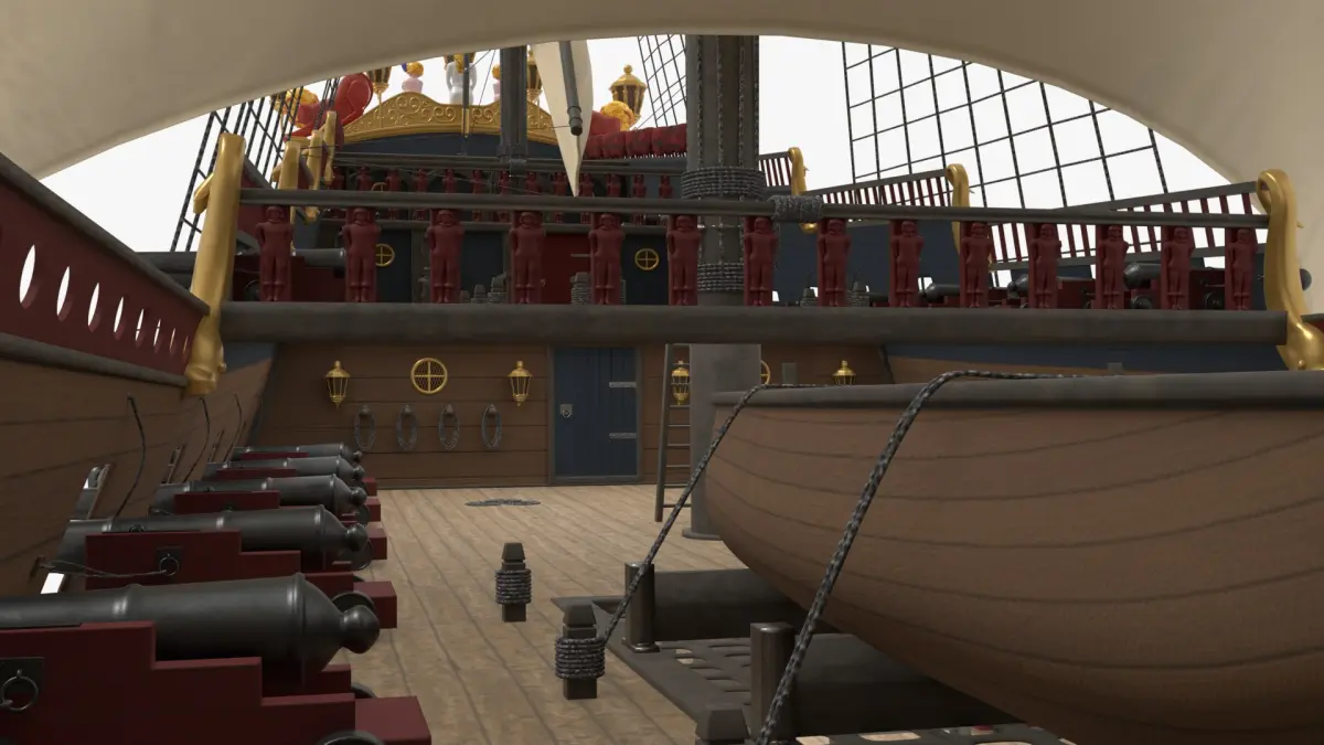 Detailed model created with Blender 3.5.0 with named parts and materials. Included 84 cannons