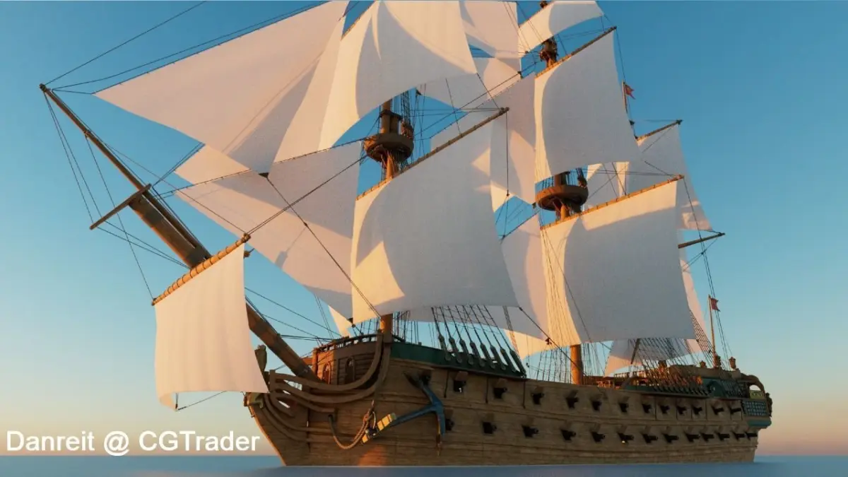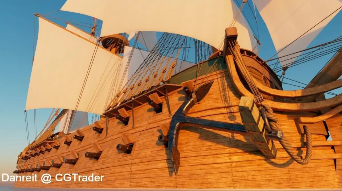 - Full seemingly acurate sail rigging. (How exacly these sails were rigged in the 17th century is not well documented)