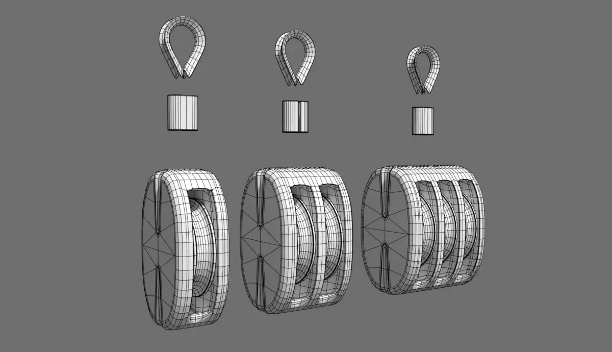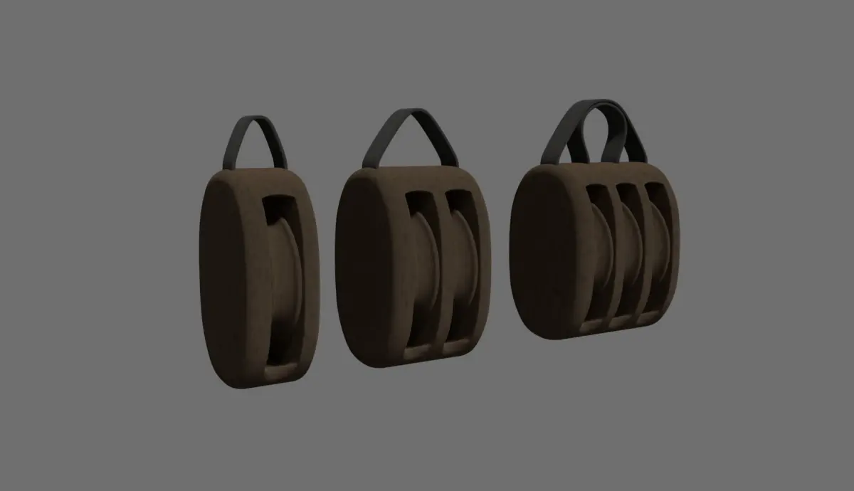 pack six pulley of wood with ropes or metal anchor