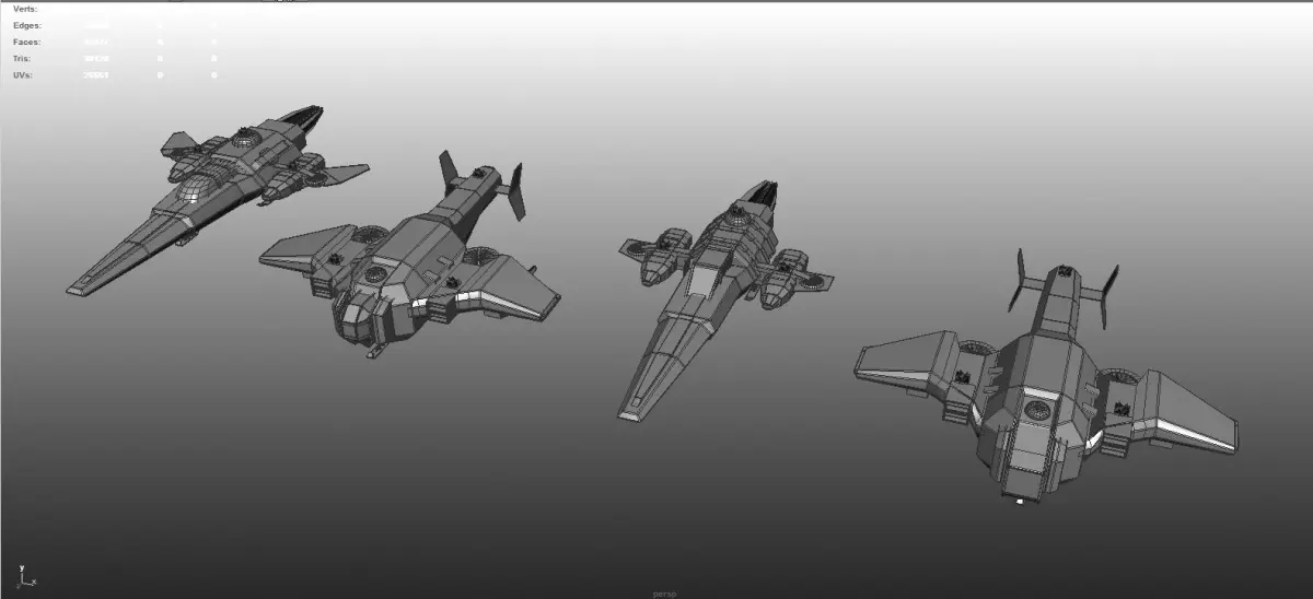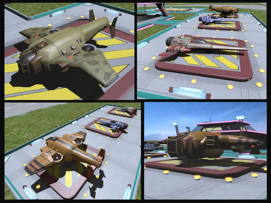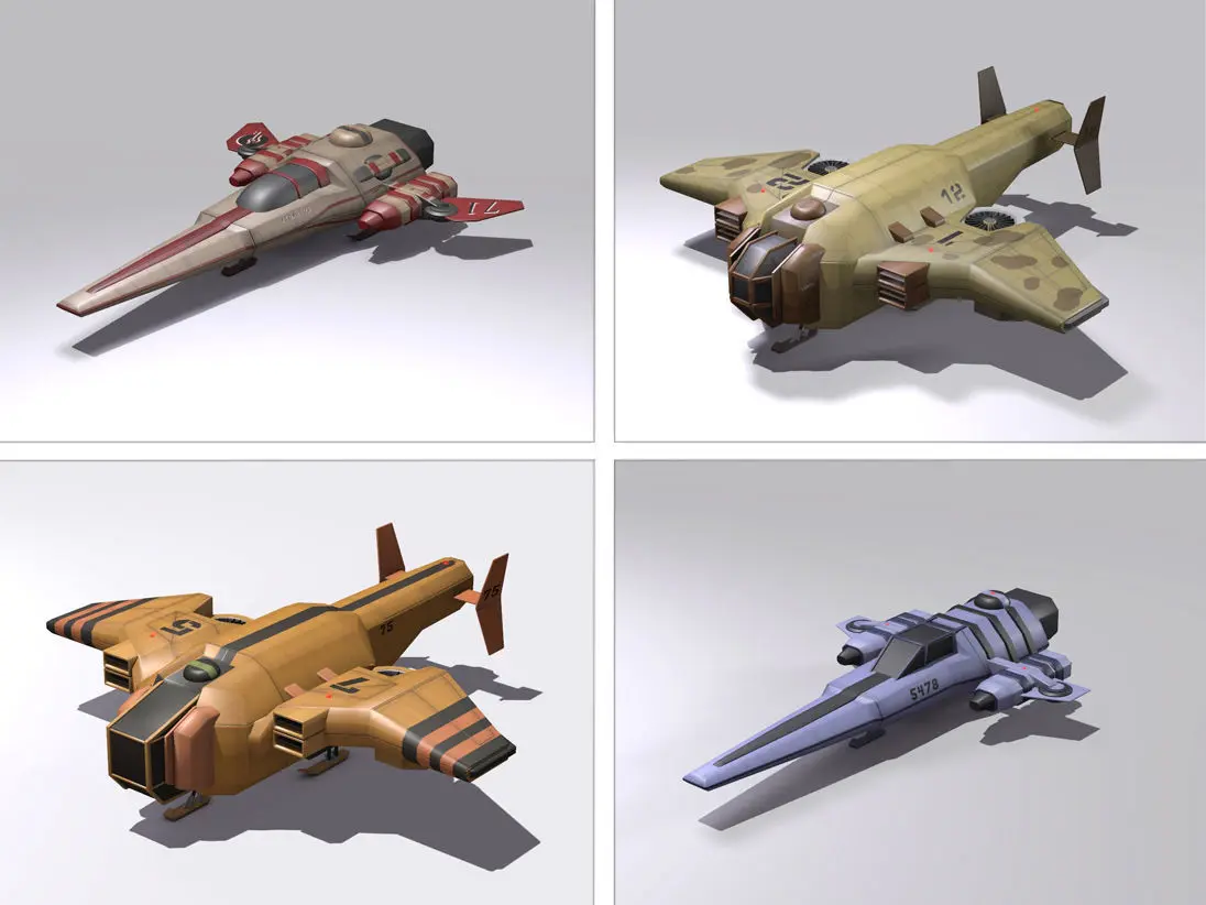Each ship includes retractable landing gear Realistic engine flame effects. Glowing hull beacon lights. 43 high resolution texture maps. UV templates.
