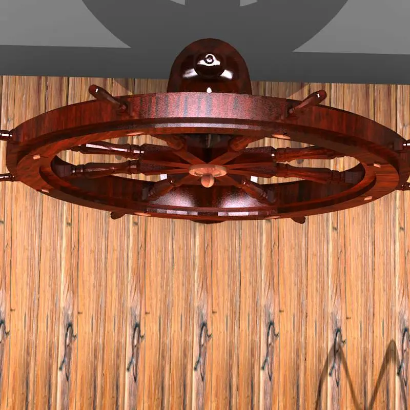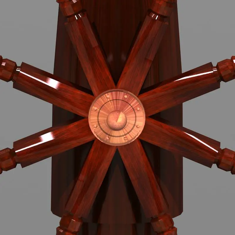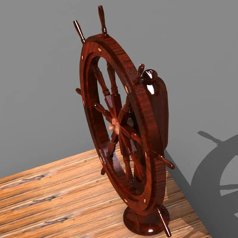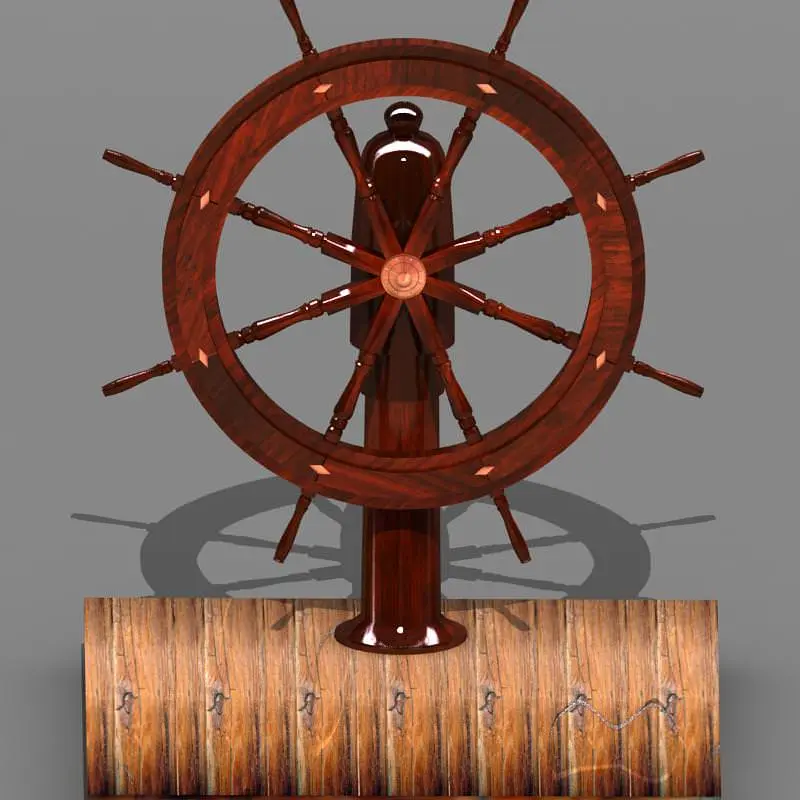 Old boat steering polygonal 3d model. Materials and textures diffuse, normal bump, bump included. Unwrapped UVs. Lowpoly for realistic yet fast renderings