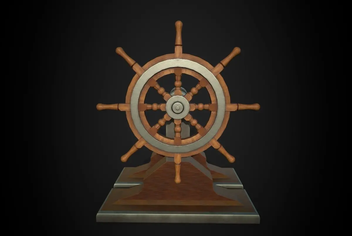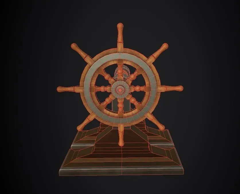 Ship wheel 3D low-poly game ready 3d model -3d model of wheel specifically for game or cartoon film