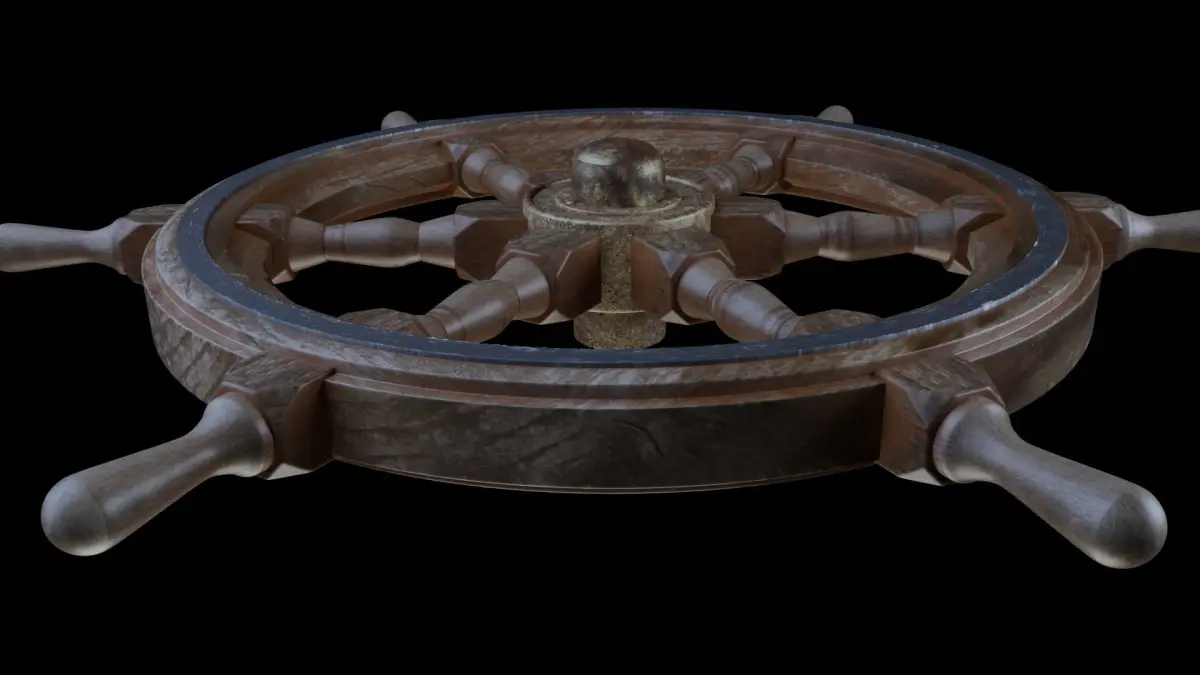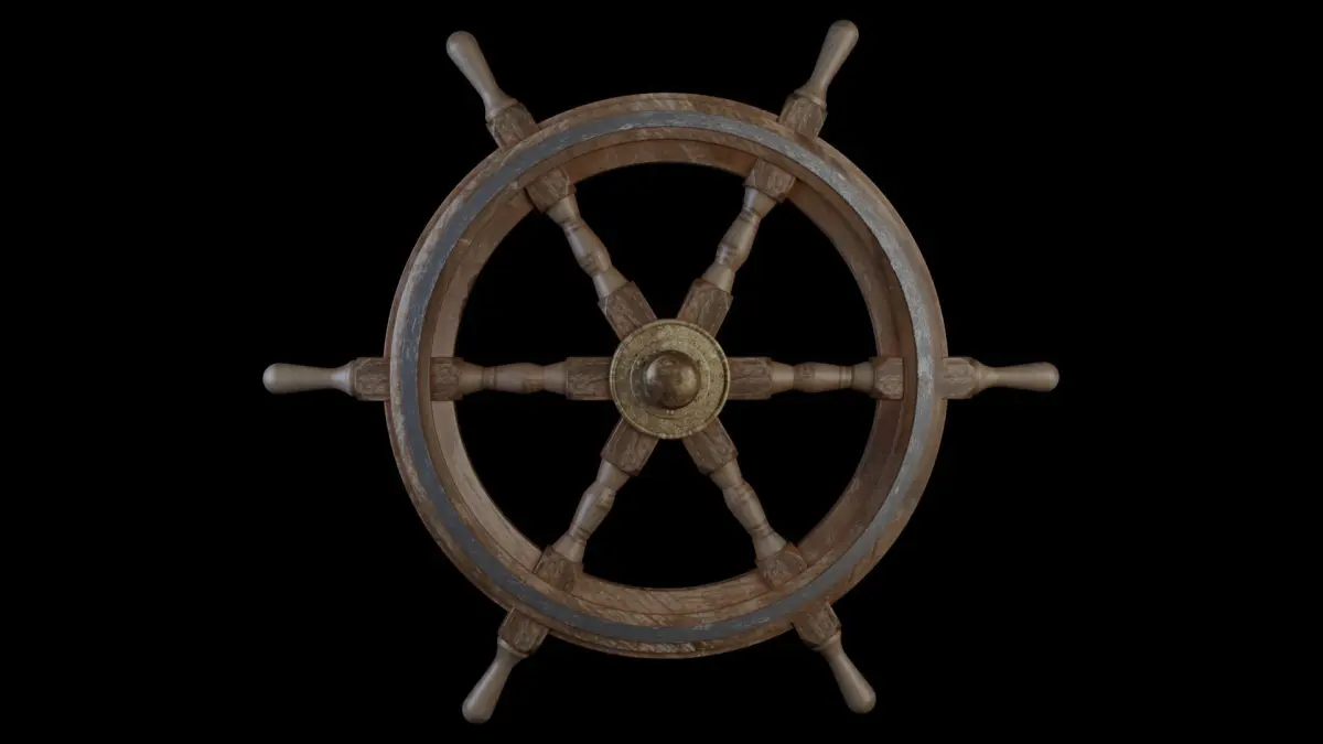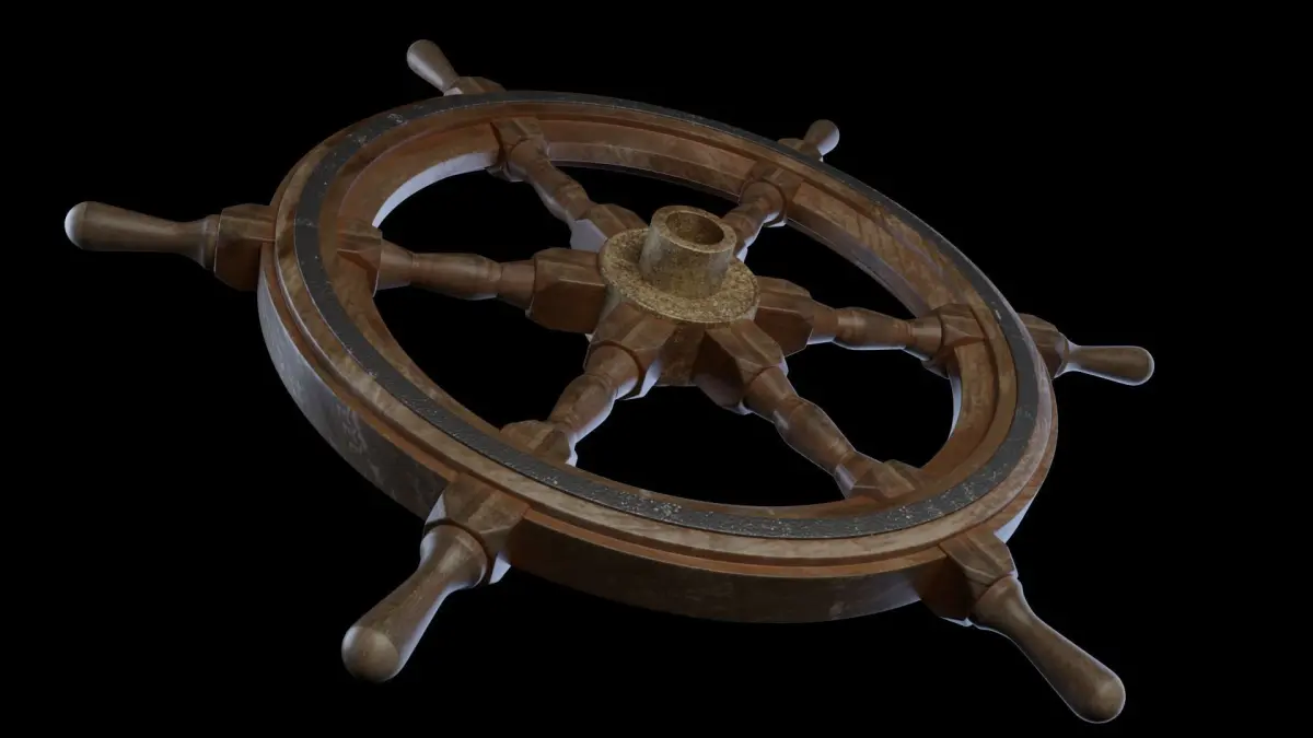 Antique Ship's Steering Wheel in Teak , 20th Century, made in Maya with right scale world and rendered with Renderman 25.2 , all meshes are grouped and all textures and materials are included like you see on images.