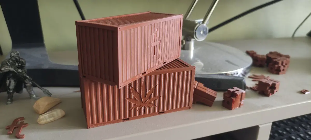 Container is scaled to 100 x 47 X 43mm for 3D printing Best quality on this scale with FFF/FDM printers have with 0.25mm nozzle, with 0.4 nozzle can well be printed a bit bigger 120 mm long. I’m sure will looks great with resin printers too even smaller.Leaf and text on sides are in separate file and if need it can be merged.Very comfortable for organizing desk small items.