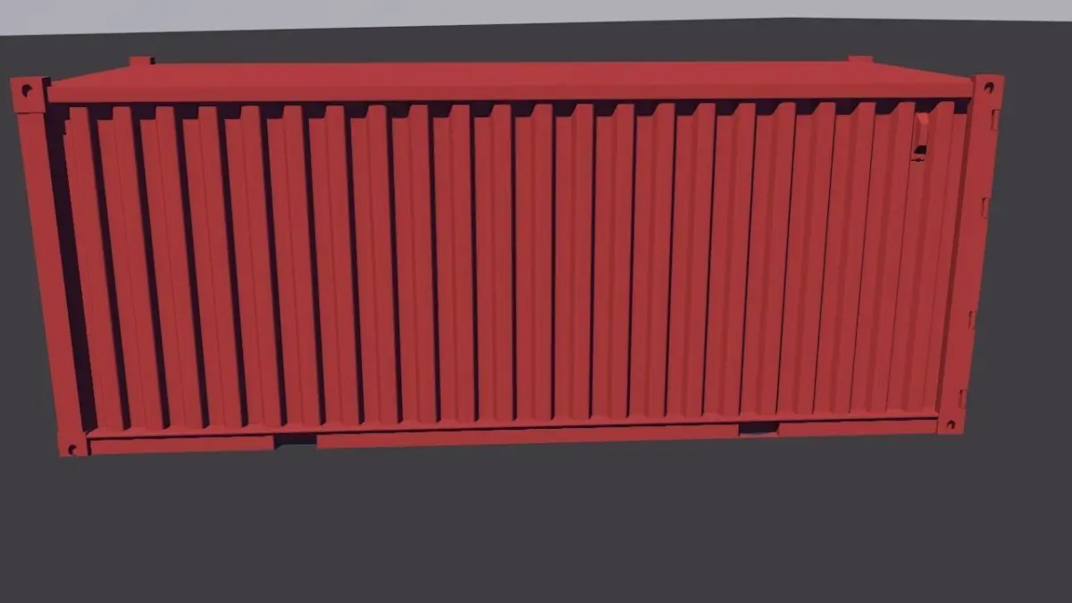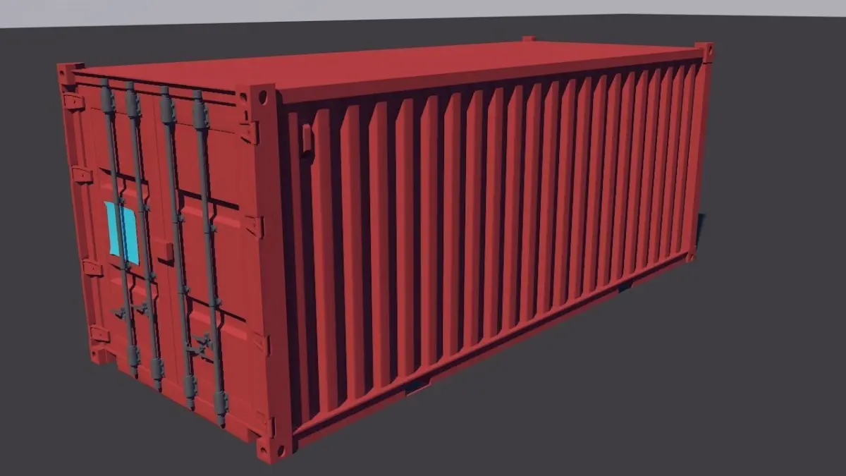 Body Panels: Each panel features precise geometry and texture mapping, depicting rust spots, weathering effects, and manufacturing details like rivets and seams.Doors: Modeled with hinges, handles, locking mechanisms, and accurately replicated ISO standard identification codes and markings.Structural Components: Corner castings are faithfully represented, essential for lifting and securing the container during transportation.Interior Features:Though less visible, the interior of the container is also meticulously crafted: