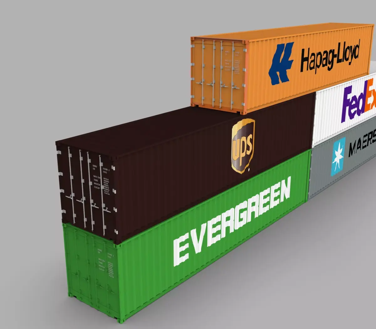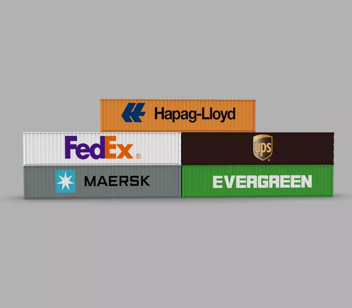 High-quality Shipping Container Pack containing multiple industrial cargo containers commonly used in logistics, trucking, maritime transport, storage yards, and construction environments. Each container features detailed exterior structures, including reinforced paneling, locking mechanisms, hinges, corner castings, doors, vents, and realistic proportions.