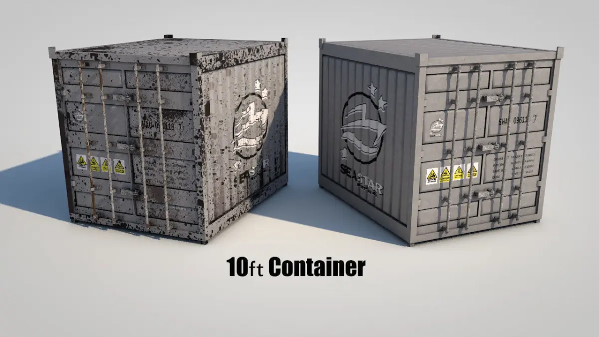 This model group contains three shipping containers which are in actual dimensions of 10ft, 20ft and 40ft. You can use them in games as assets models because they are so lightweight at polygon counts.