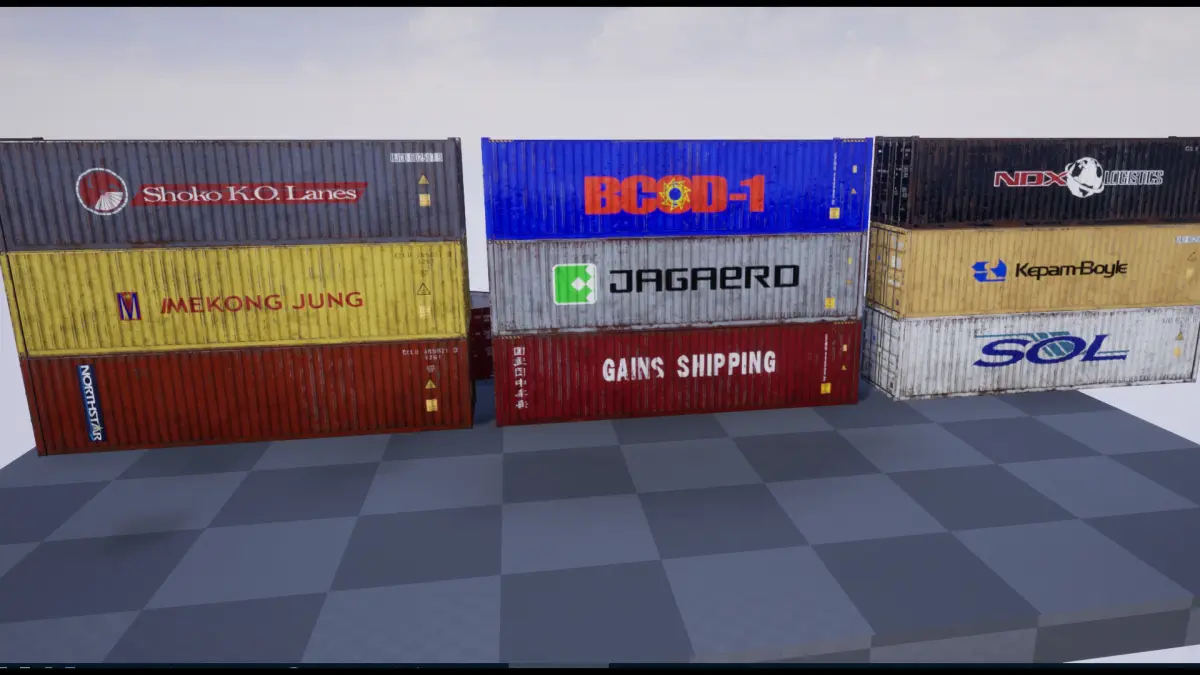 All logos are fictional and give the containers a semi-authentic feel.