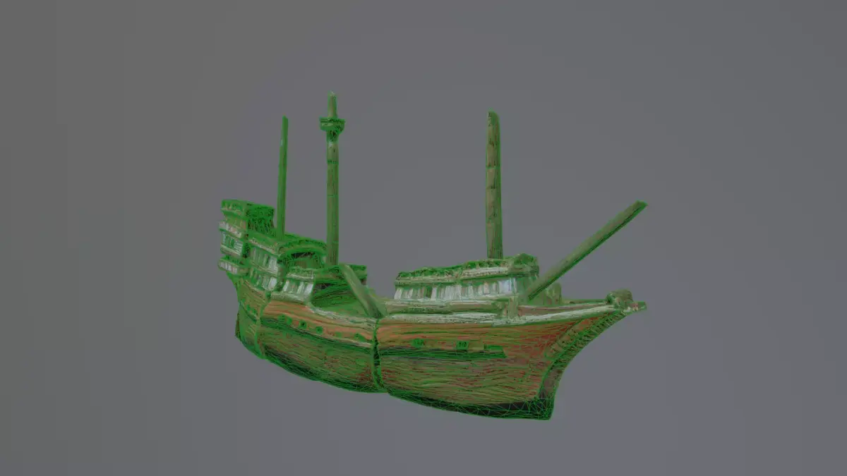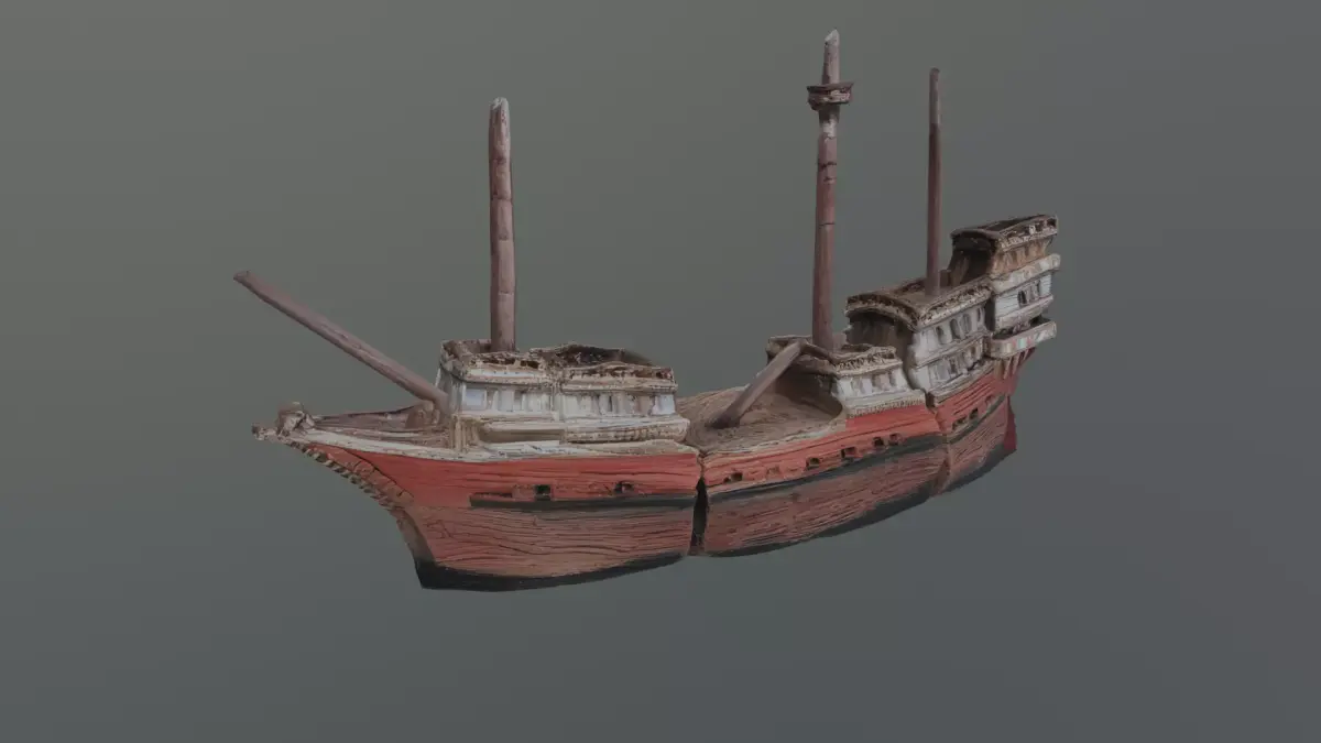 A stylized broken wooden ship featuring a split hull, damaged deck structures, and aged timber details. Designed with a weathered, wrecked appearance, this asset is ideal for shipwreck scenes, coastal environments, or historical settings. Its fragmented structure adds visual storytelling for abandoned or ruined maritime scenarios. Includes FBX, OBJ, and BLEND