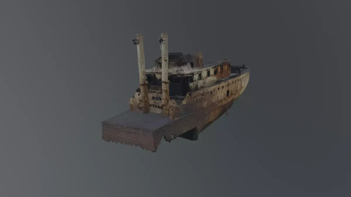 rusted industrial ship featuring a heavily corroded hull, worn metal surfaces, and aged structural elements. Designed with a decayed, abandoned look, this vessel is ideal for post-apocalyptic, maritime, or horror environments. Includes FBX, OBJ, and BLEND formats, optimized for real-time use