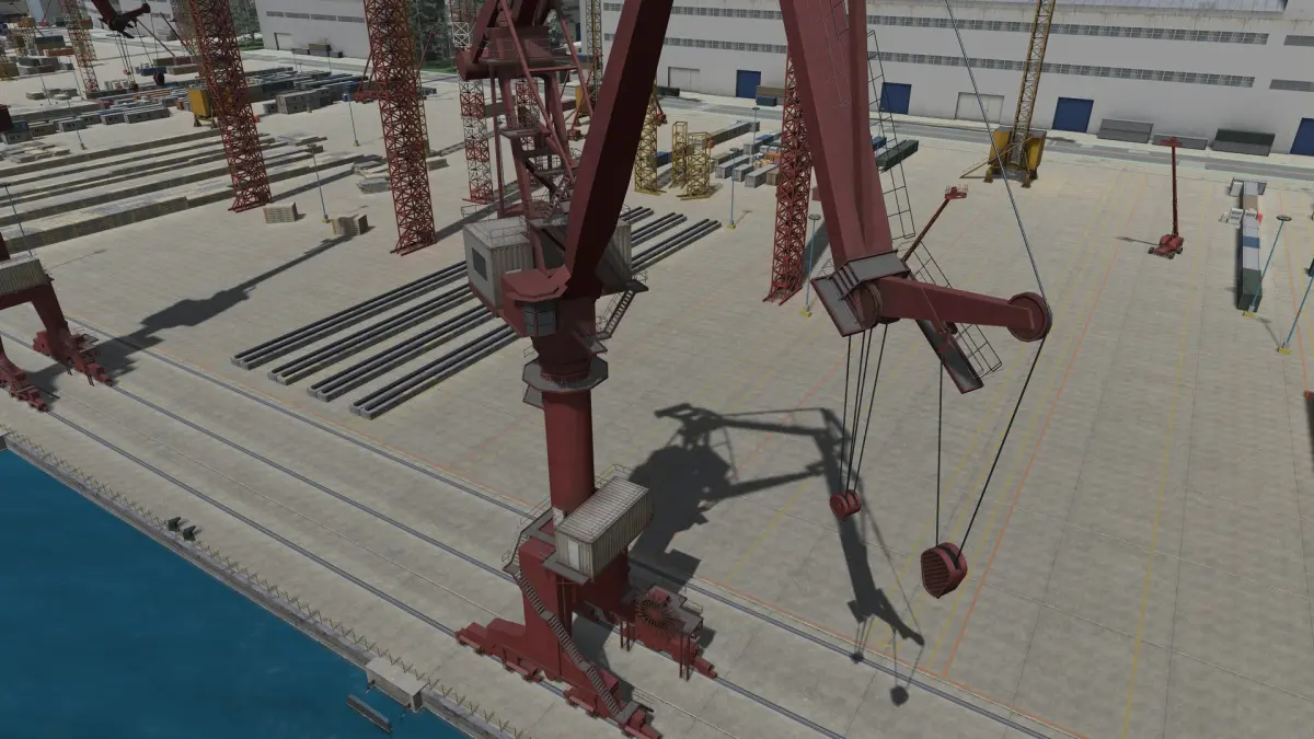 This is all-in-one shipyard level assembled in Unity that can be used for simulation, training, or serious games in desktop or VR configurations. The database includes all major elements and machines of the real shipyard - Goliath, double-boom and tower cranes, telescopic boom lift, scaffolding, and even ships. Most of the models in the package have levels-of-details and collisions. It is an incredible offer for the money.
