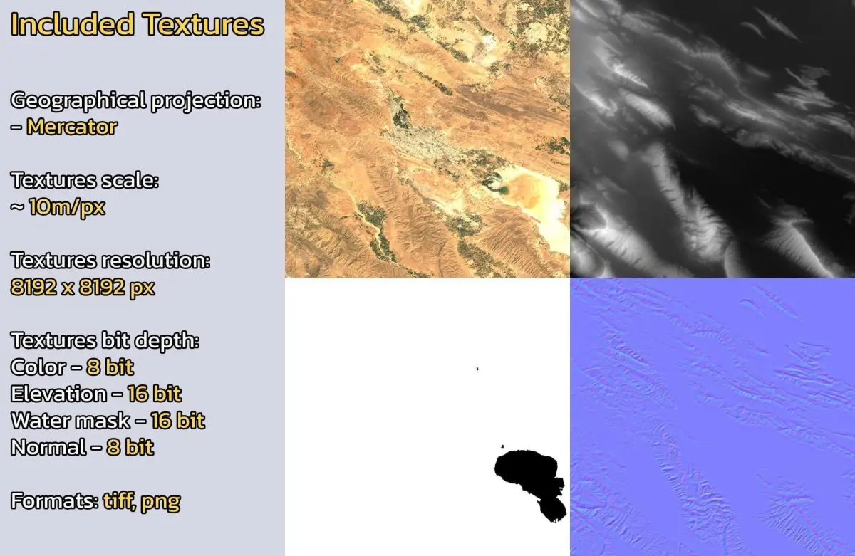 Warning: minor clouds/artifacts may be present on the diffuse color satellite texture due to the nature of the dataset. Check product images.