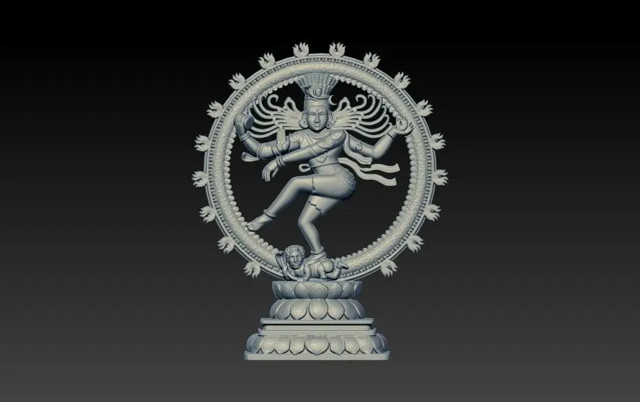 Nataraja, (Sanskrit: “Lord of the Dance”) the Hindu god Shiva in his form as the cosmic dancer he purpose of the dance is to release men from illusion of the idea of the self and of the physical world. The cosmic dance was performed in Chidambaram in South India, called the center of the universe by some Hindus. The gestures of the dance represent Shiva's five activities, creation (symbolized by the drum), protection (by the fear not hand gesture), destruction (by the fire), embodiment (by the foot planted on the ground), and release (by the foot held aloft).designed in zbrush Software, This is not Rhino Nurbs file. This is STL file and its ready for 3d printing, Please look at the pictures in the listing for more information. NOTE: PLEASE CHECK THE PICTURES BEFORE YOU PURCHASE THIS PRODUCT.