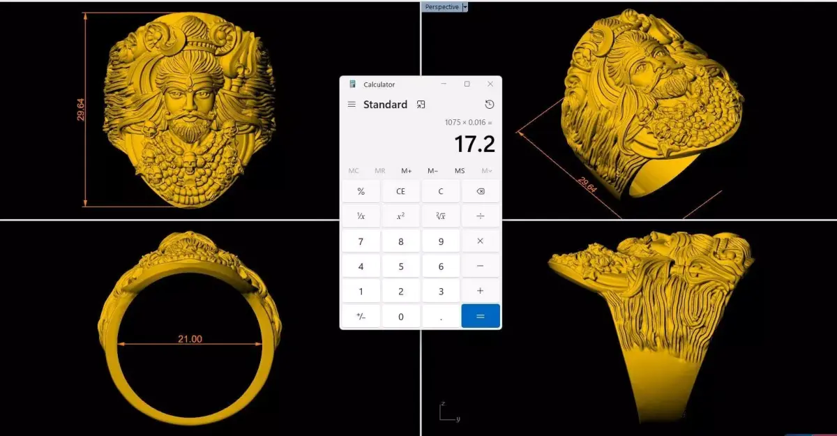This image shows a 3D digital model of an intricately designed Lord Shiva ring, featuring the deity in his divine and powerful form. The design is a Computer-Aided Design (CAD) model intended for 3D printing and jewelry manufacturing, often cast in materials like 92.5% sterling silver or gold. DescriptionThe center of the ring features a detailed portrait of Lord Shiva, characterized by his traditional attributes: the crescent moon in his hair, a third eye on his forehead, a trishul (trident) to the side, and a mundamala (garland of skulls) at the base. The side view reveals a textured, flowing pattern that mimics his matted locks (Jata), creating a bold and spiritual statement piece. These models are typically provided in STL or 3DM file formats, which are compatible with resin or FDM 3D printers for creating prototypes or final jewelry pieces