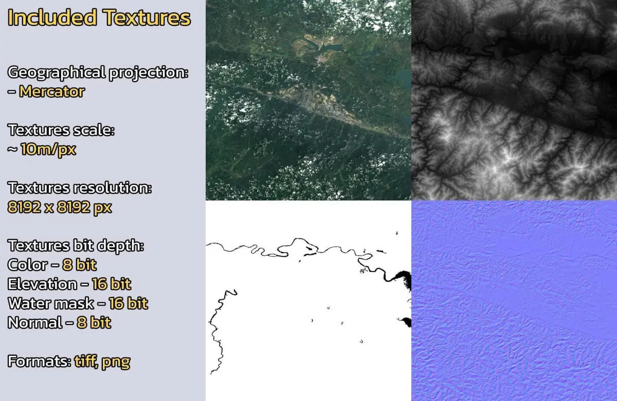- Textures resolution: ~10m/px