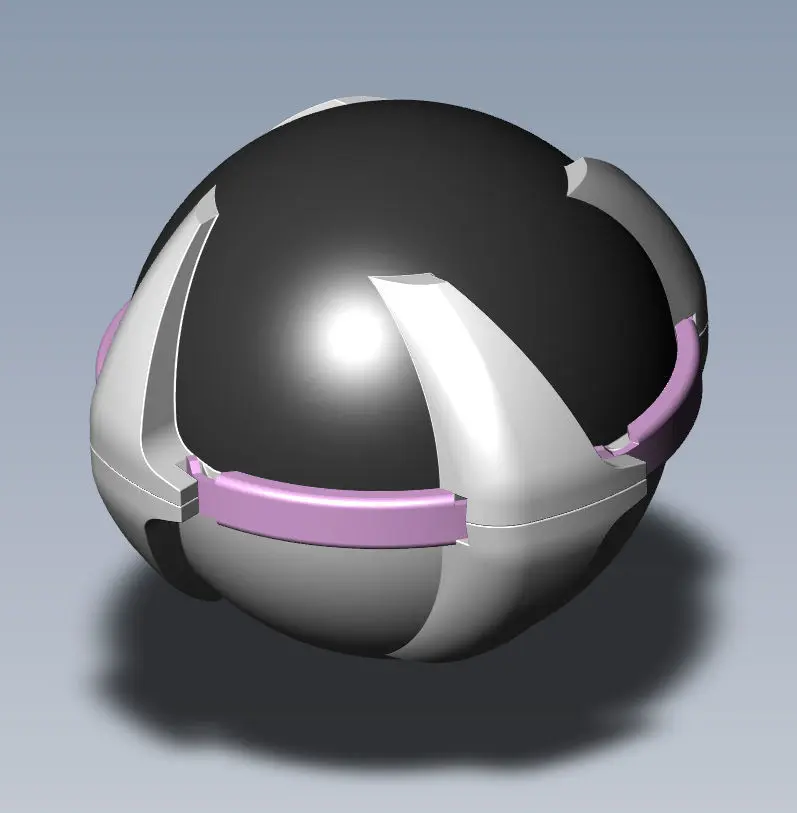 The submunition consists of two aluminium hemispheres embedded with steel fragmentation balls.