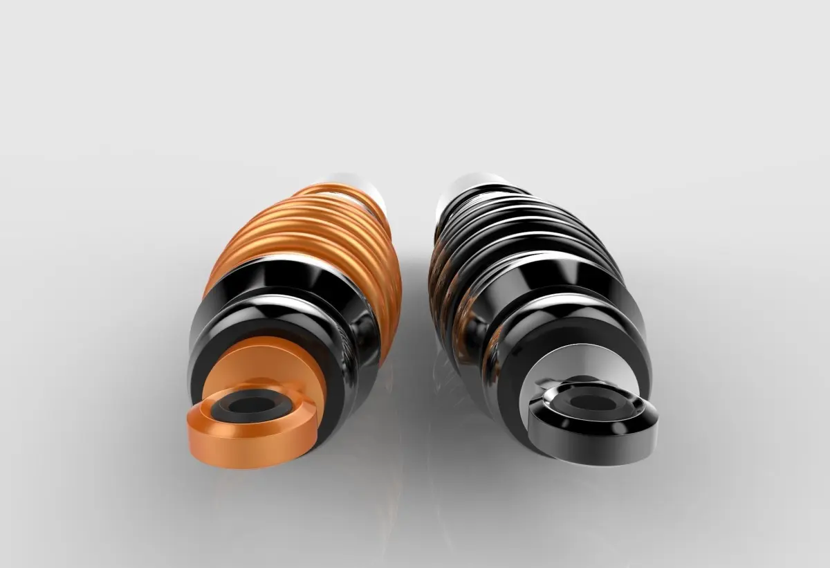 Shock absorber 3D Model high-polyA shock absorber (in reality, a shock damper) is a mechanical or hydraulic device designed to absorb and damp shock impulses. It does this by converting the kinetic energy of the shock into another form of energy (typically heat) which is then dissipated. Most shock absorbers are a form of dashpot (a damper which resists motion via viscous friction). Rendered in Keyshot