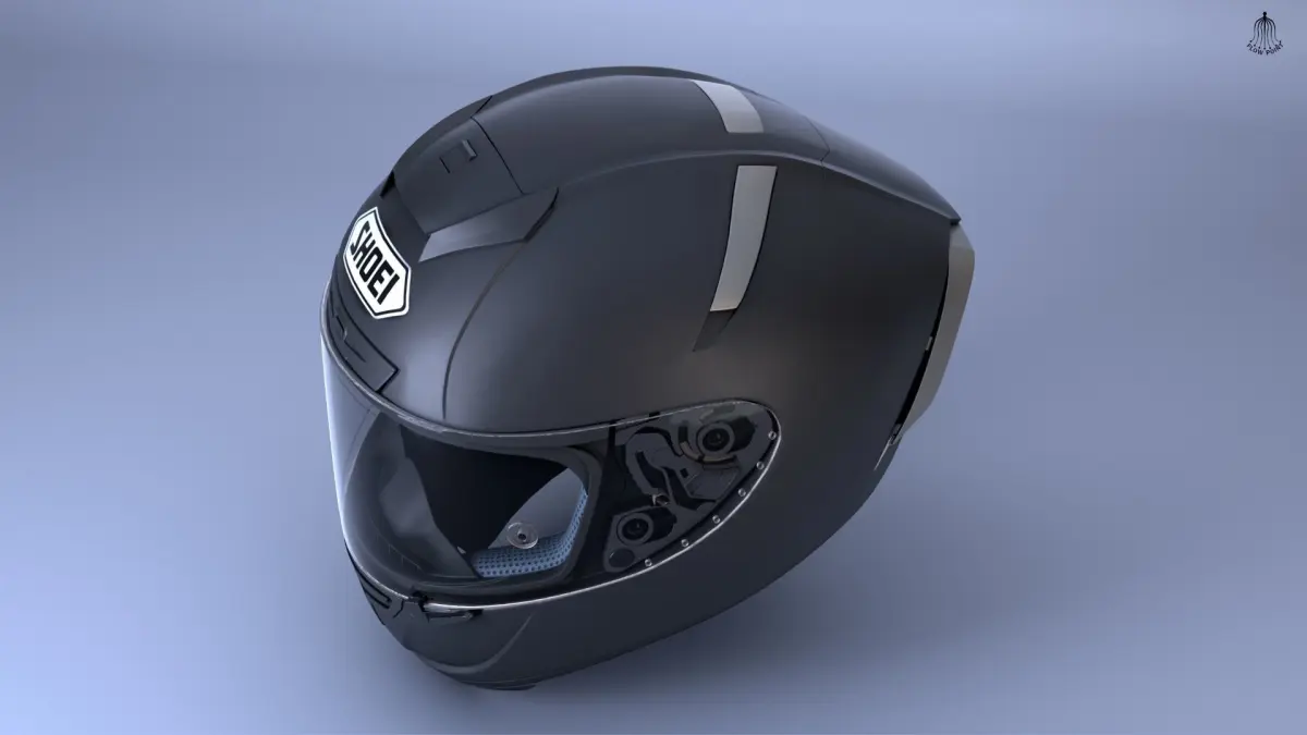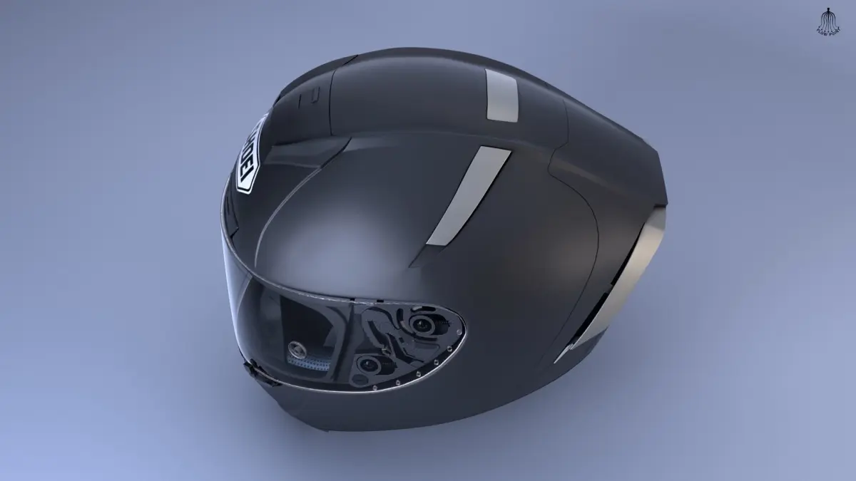 ShoeiX-14 height quality sport helmet 3D model with high detail, and realism both exterior and interior. All objects are arranged and named in an orderly manner. Bonus Free rigging for the open front windshield.