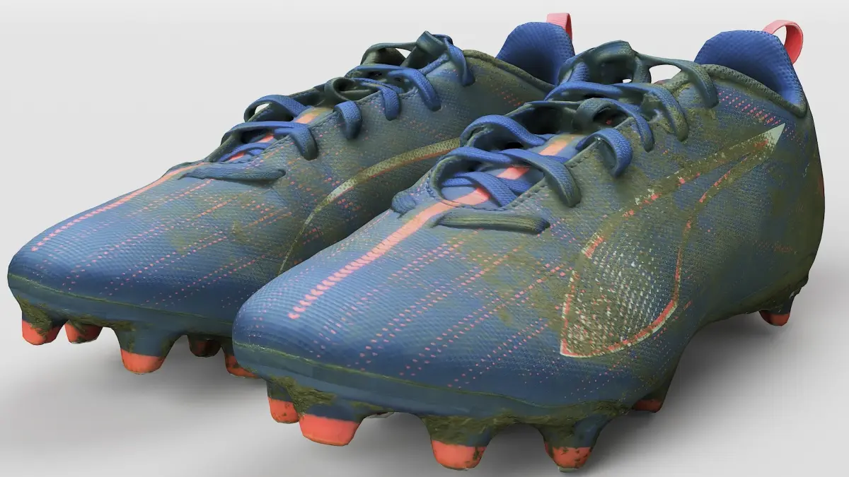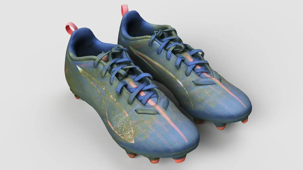 High detailed 3D model from cleaned retopology scan data of dirty football shoes.