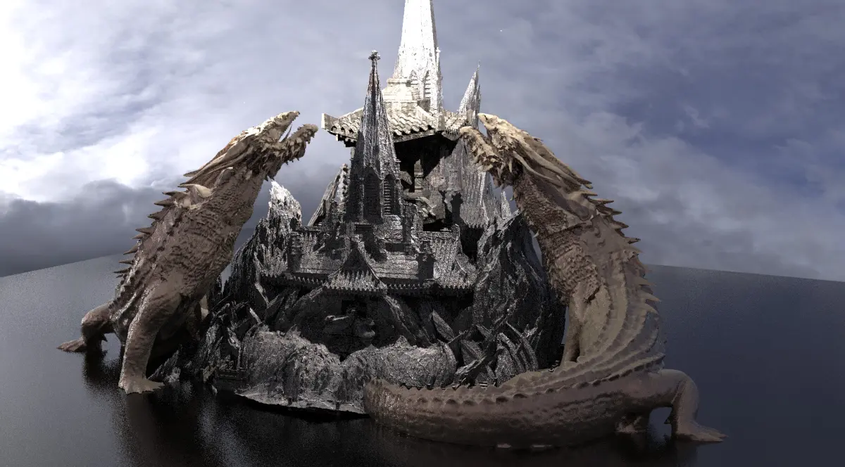 Dragon Shogun River Temple 3D! Tiled texture provided