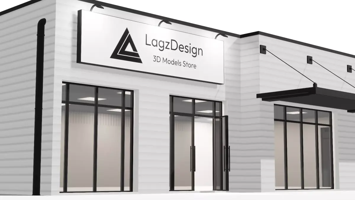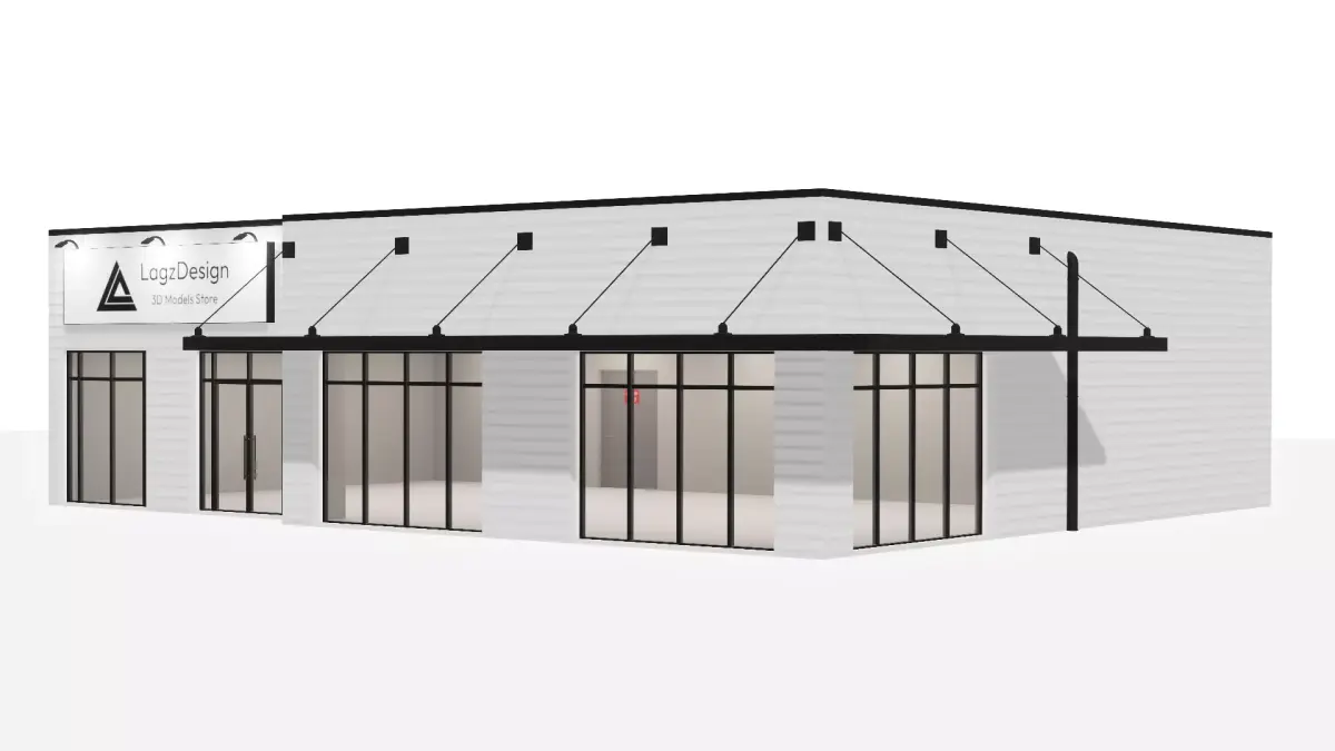 Shop building, with a modern and minimalist design and empty interior for full customization, openable doors , customizable sign that can be edited or completely removed. Game ready Model, Great for Games, Renders or Animations.