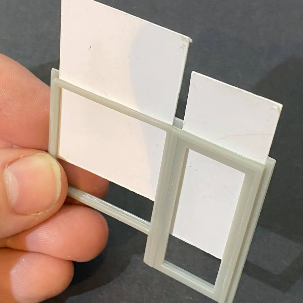 This is a door and window frame I created for a petrol station I'm building for my 7mm/ft or 1/43 scale O gauge model railway.