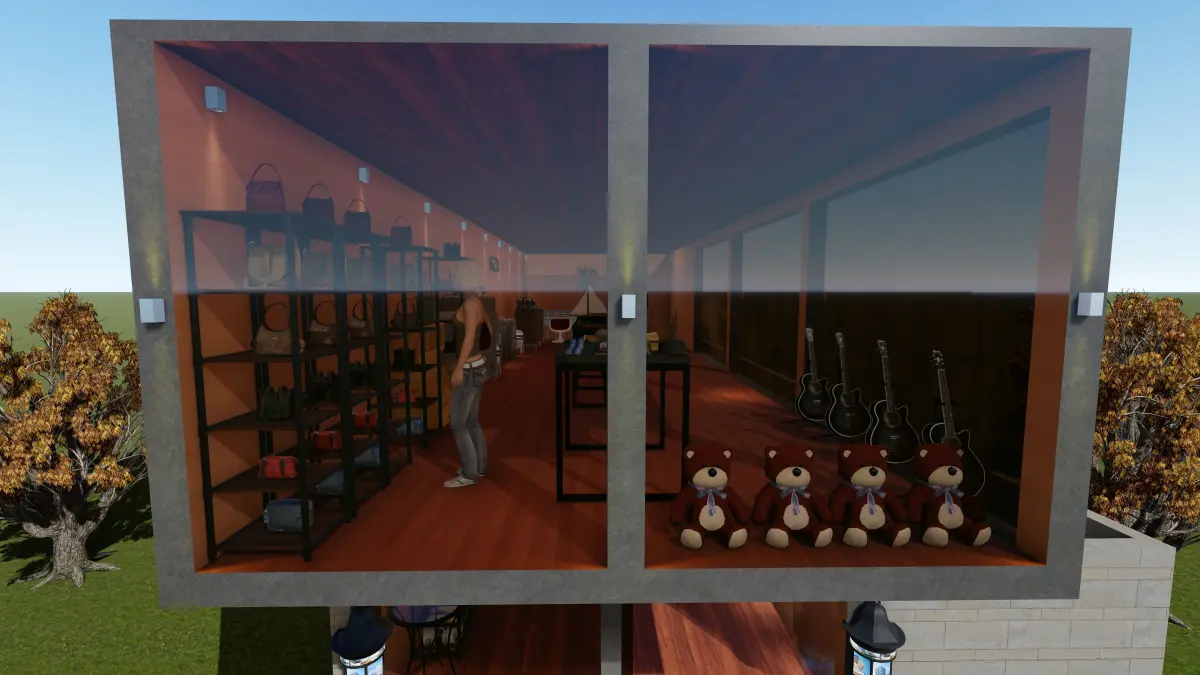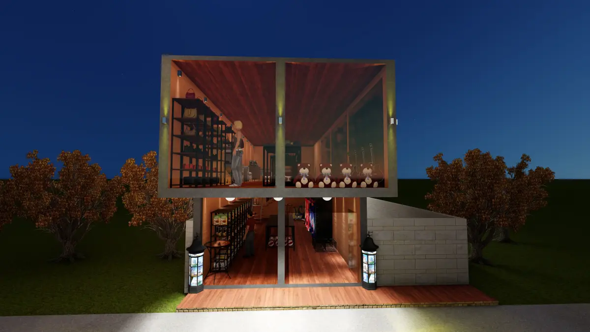 Shop made of iron containers and glassEasy to implement, cheap and resistant to all environmental conditions and beautiful appearance3d rendered by lumion 8