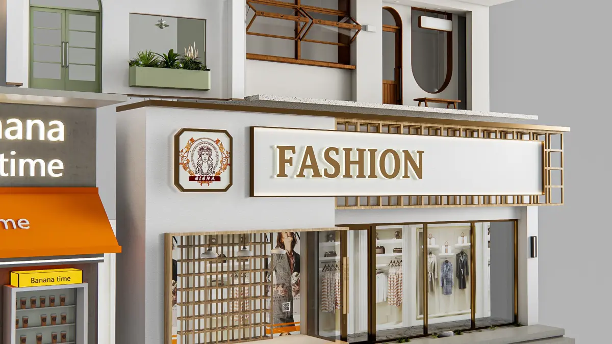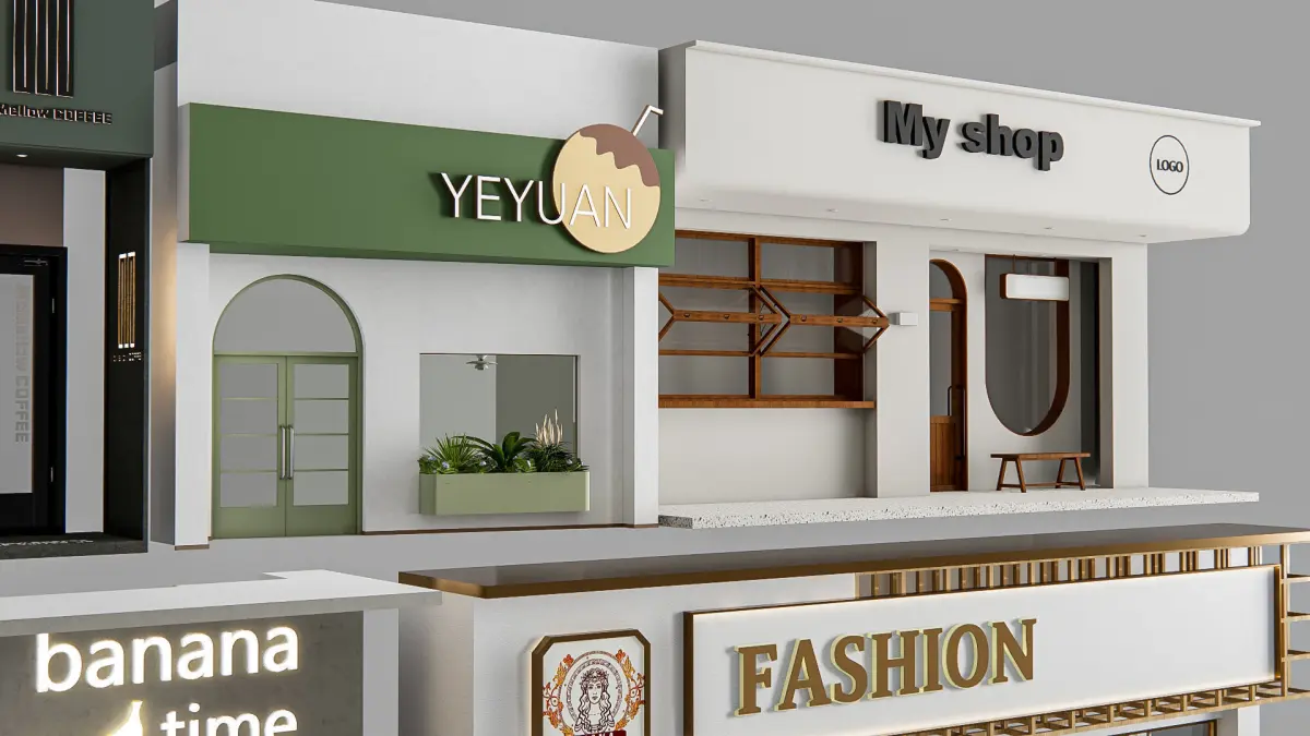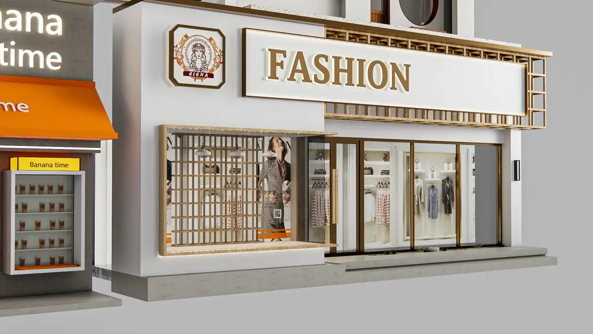 Modern Shop Front Facade 3D Model – High Detail, Customizable Design