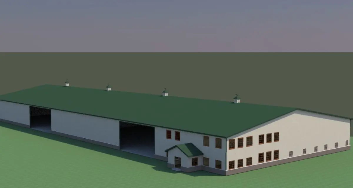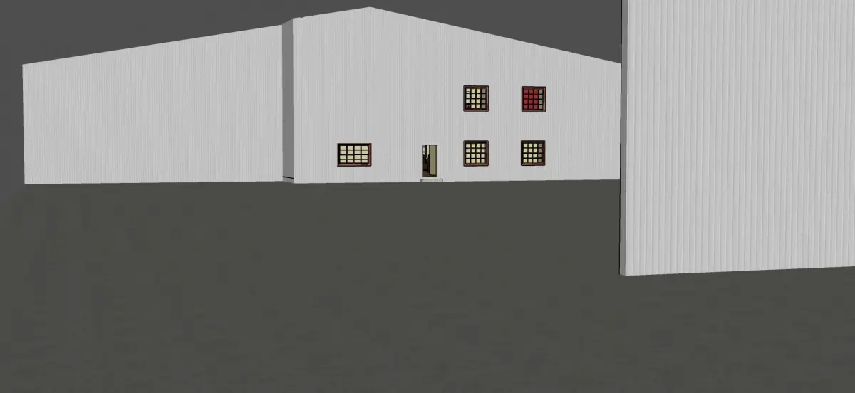 shop with living space features a full kitchen, 4 offices, bedroom area (not modeled ) conference room and living room. The shop area has full heated shop and cold storage. The blend file has been set up to import into giants editor
