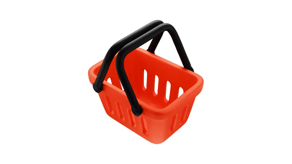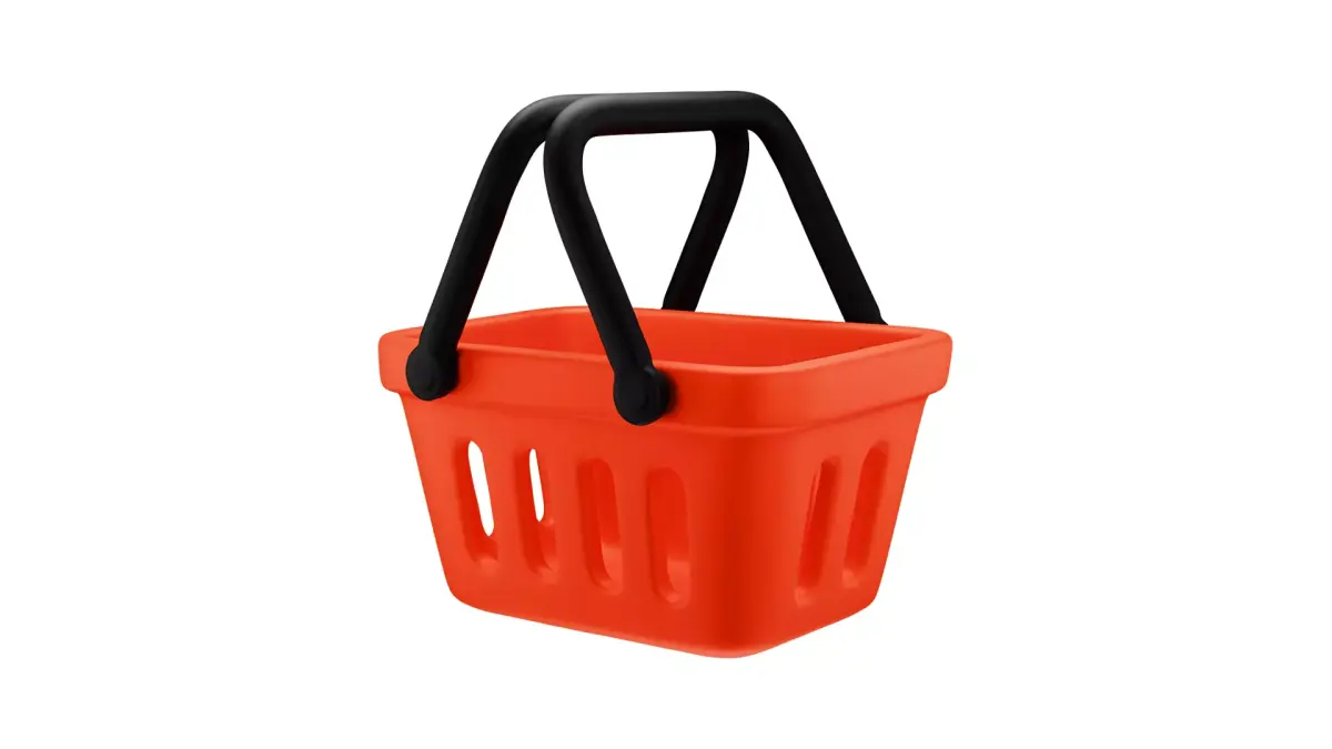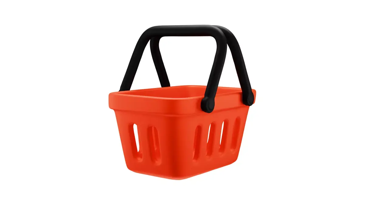 Minimalist 3D shopping basket icon in a clean, cartoon style. Red plastic body with matte black handles. Designed for use in UI visuals, 3D explainers, and modern motion graphics.Created with: **Blender 4.4.3**Rendered in: Cycles