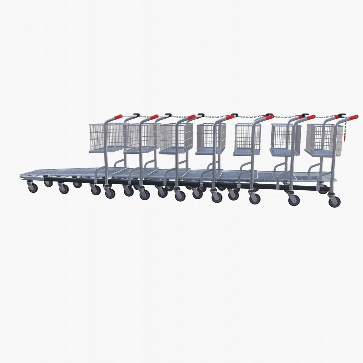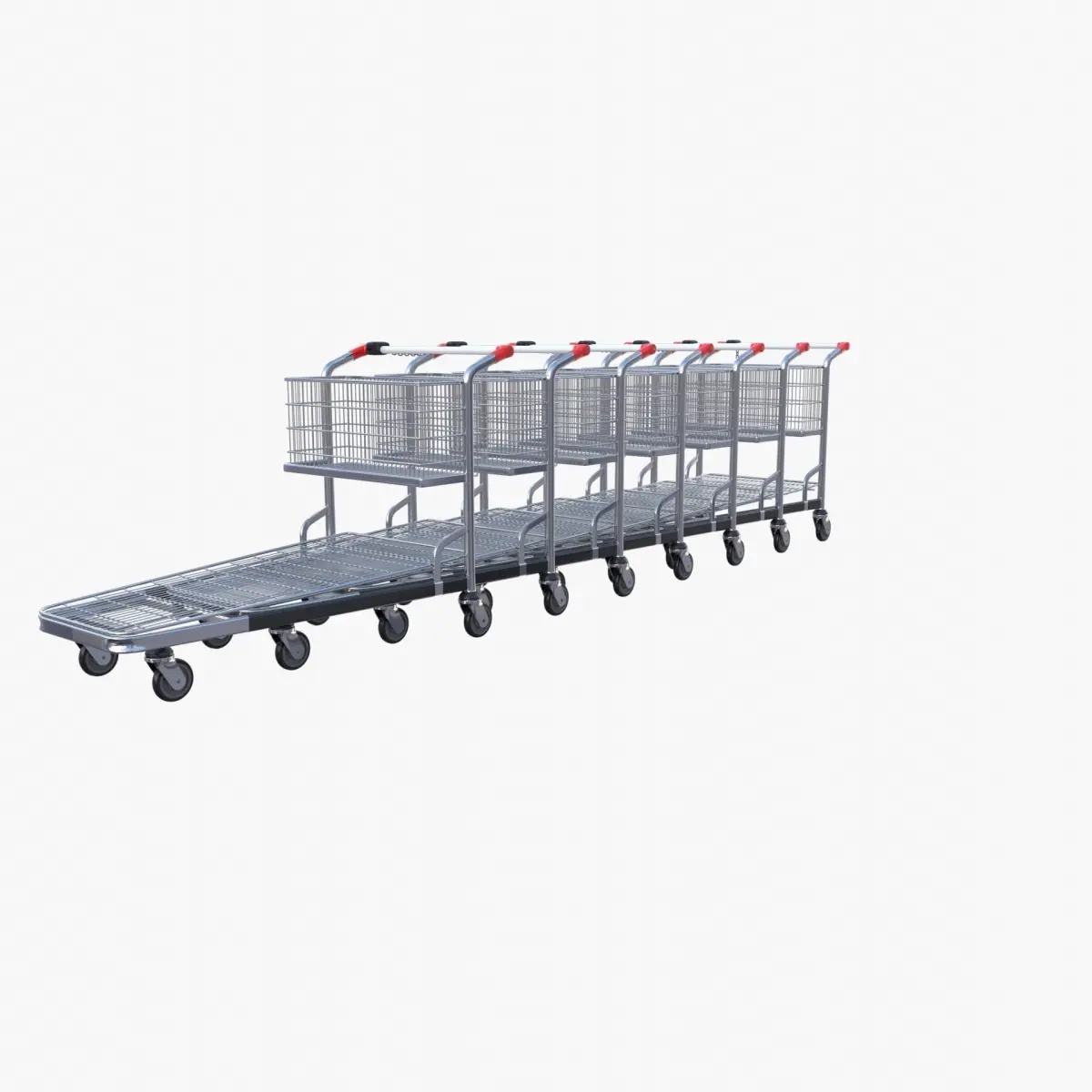 Shopping cart stack 3d model rendered with Cycles in Blender, as per seen on attached images. The model is scaled to real-life scale.