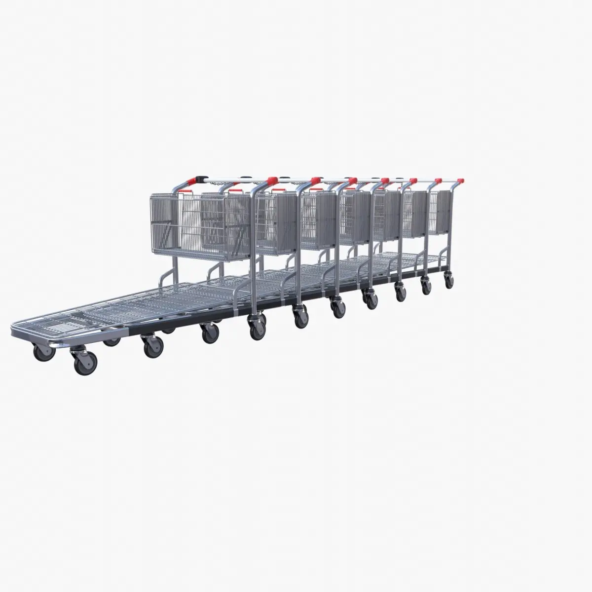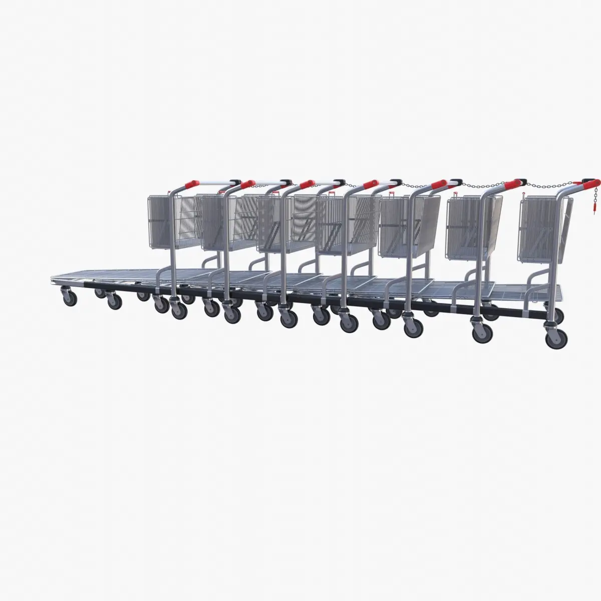 Shopping cart stack 3d model rendered with Cycles in Blender, as per seen on attached images. The model is scaled to real-life scale. Poly count is for one cart.