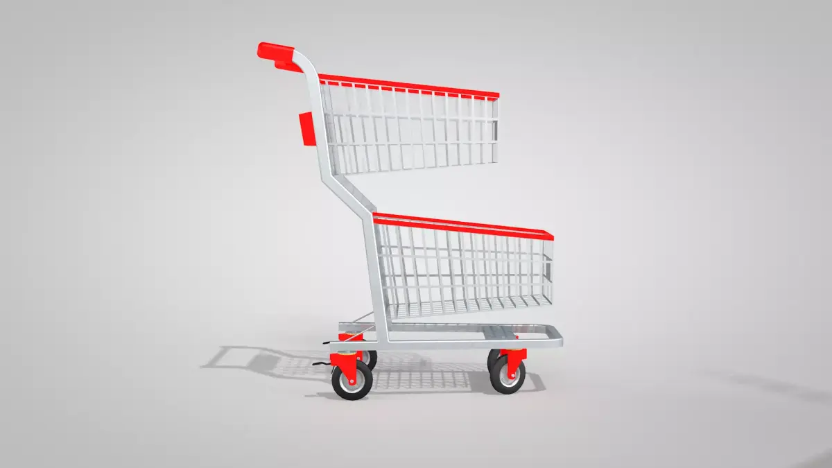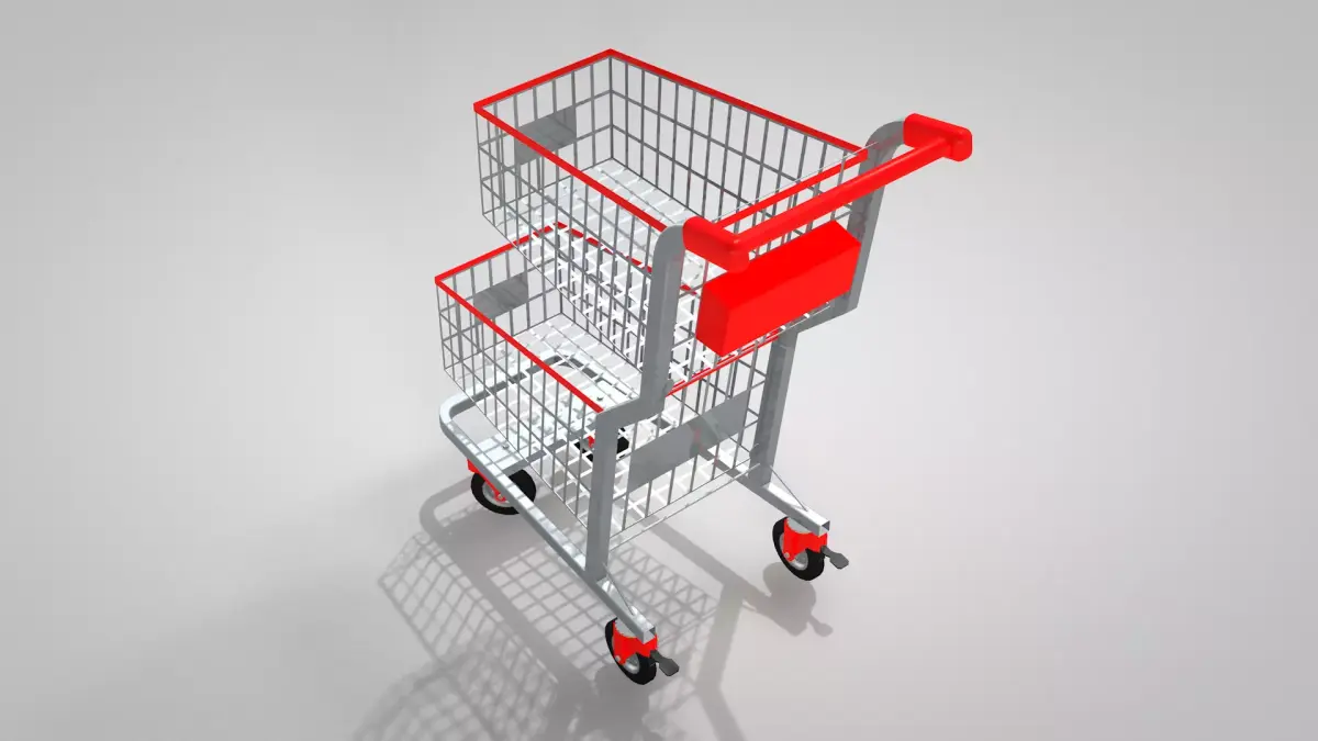 Shopping Cart - Two Baskets 3D created in Cinema 4D and exported to other formats: fbx, obj, dae, obj, blend, glb, and c4d. The texture is basic, and you can define the color of the Shopping Cart - Two Baskets. It has side panels where a logo can be applied.The wheel axles, brakes, and railings are correct and aligned.I hope you like it and find it useful.Thank you for visiting, renatodalle
