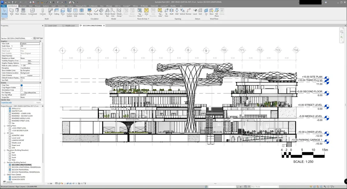 The Revit model is highly detailed and complete, including all floor plans, fully textured and colored rendered plans, as well as all elevations and sections. Additionally, it includes detailed views of all environments, with fully furnished spaces. The model is in English, making it suitable for international use. Includes REVIT +LUMION +RENDERS .RAR