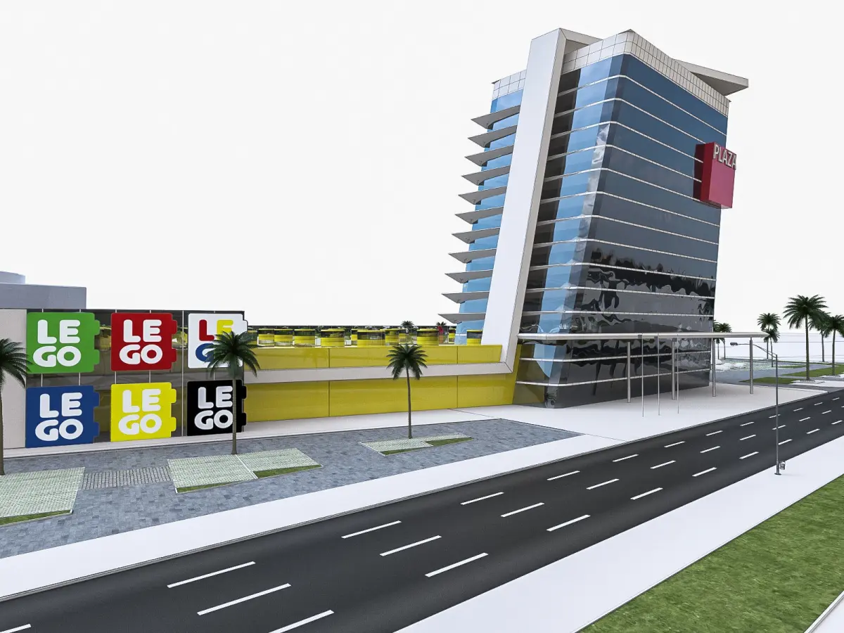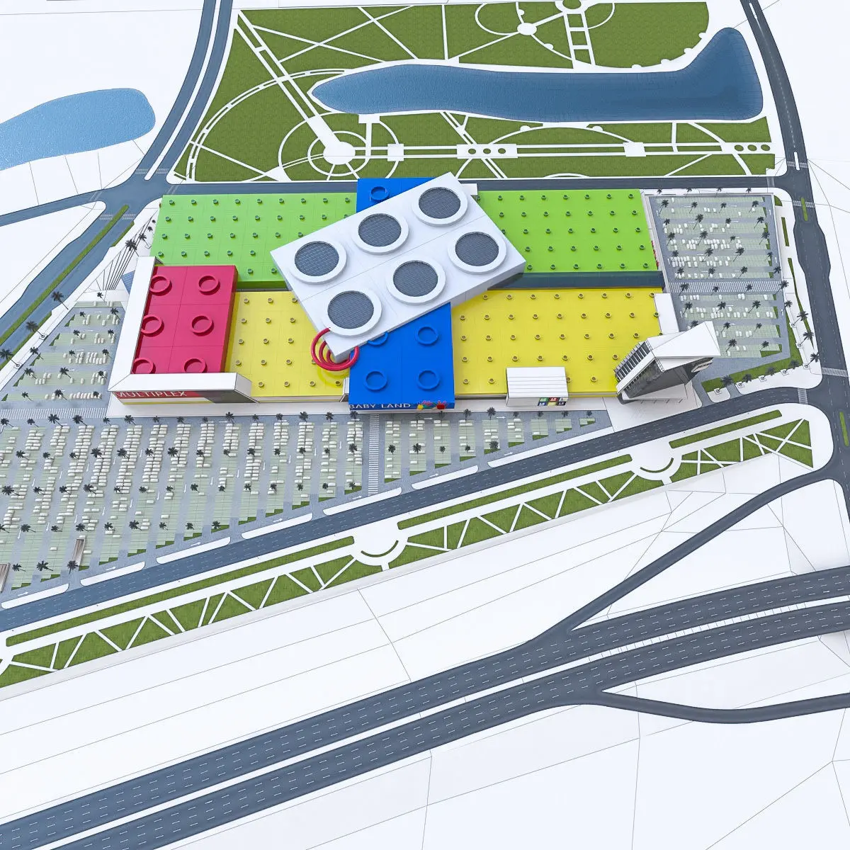 This is real-world-size model of Shopping Mall Exterior with Landscape and Parking Lots made by professional architect.