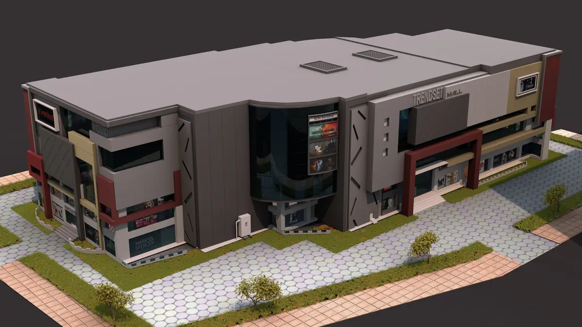 Hello, We are here with a high detailed Shopping Mall or shopping cerntre 3D Model. This 3d exterior architecture is modeled using Blender 2.92 and rendered using Blender cycles. This commercial shopping mall is very useful for city, modern, town and urban scenes.