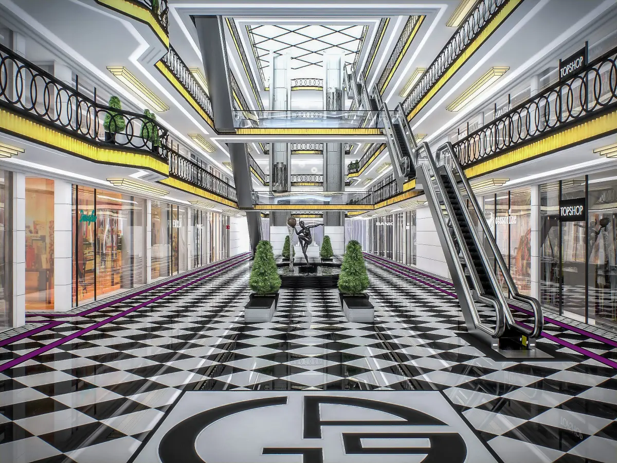 GEOMETRY========The models mesh is high quality, with clean edge flow.All furniture and foliage are Instances with random Scale/Rotate so easy to replace.Scene objects are organized by layersCAMINT_brandsINT_detailsINT_doorsINT_floorsINT_glassINT_escalatorINT_liftsINT_lightINT_railingsINT_shopsINT_wallsLIGHT