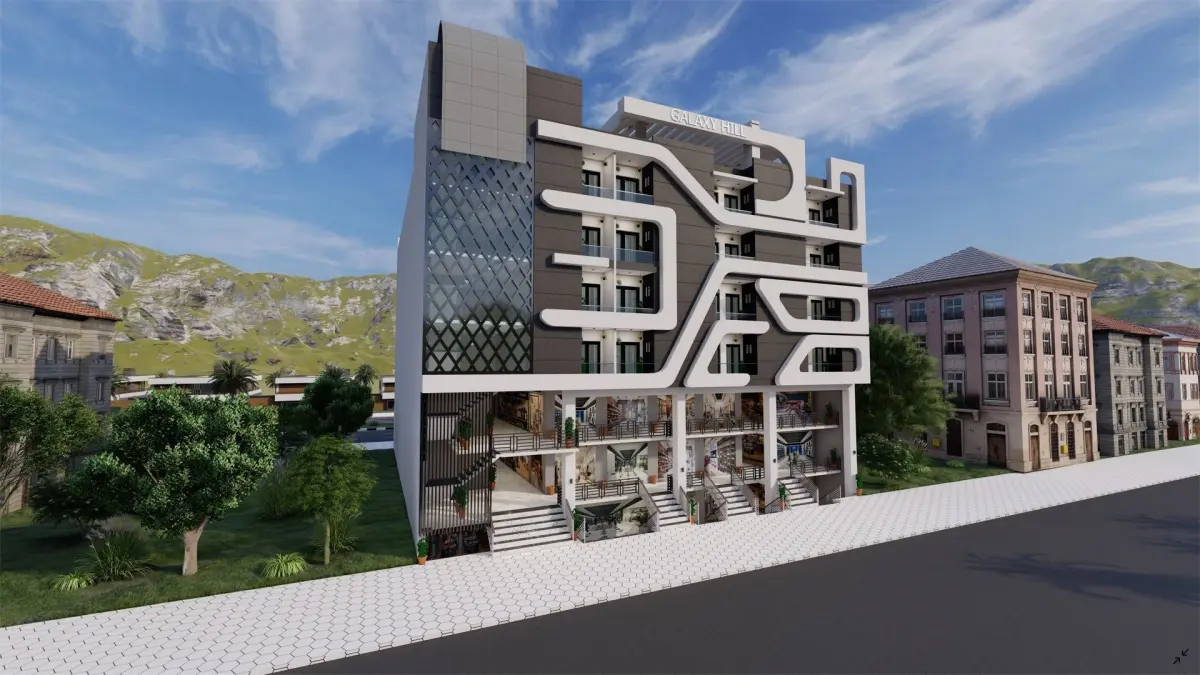 SHOPPING MALL OR APARTMENT BUILDING DESIGNResidential Building in the city center of Hills. Тhe building is located on a non corner property. There are 7 floors with 4 large double-bed apartments on each floor, & 2 large Three-bed apartments The Sketchup file contains 3d Model &, construction, details, dimensions and etc.