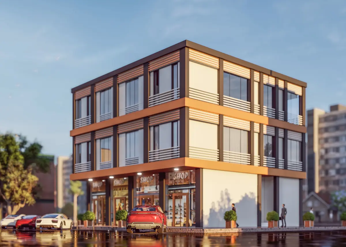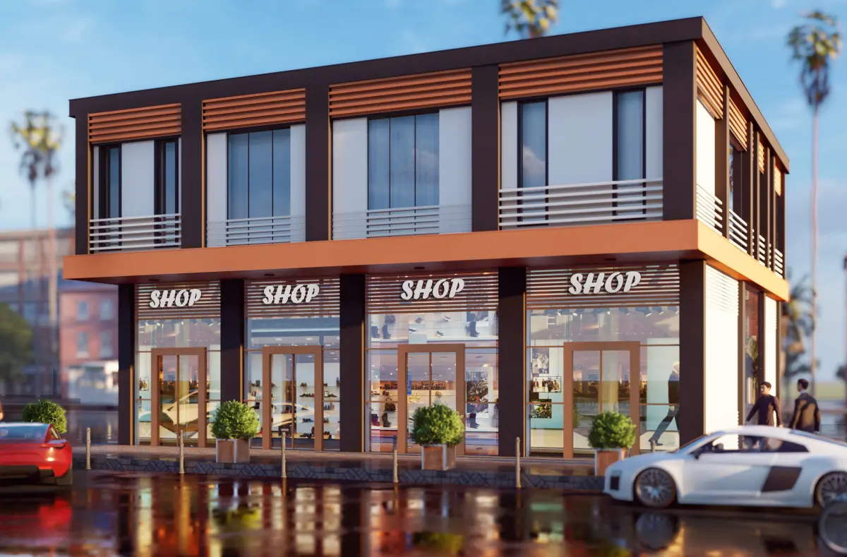 shops shop building on corner of street 3D model
