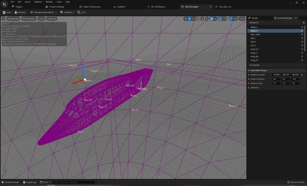 Developed from the Short SC.7 Skyvan utility transport, the C-23 Sherpa has an exterior length of 17.69 meters, height of 4.95 meters and fuselage diameter of 2.2 meters. It has a longer wingspan of 22.78 meters and a wing area of about 42 square meters. Its fuselage and wings are longer than the Skyvan but of the same fuselage cross section. The aircraft has a wheelbase of 4.26 meters.