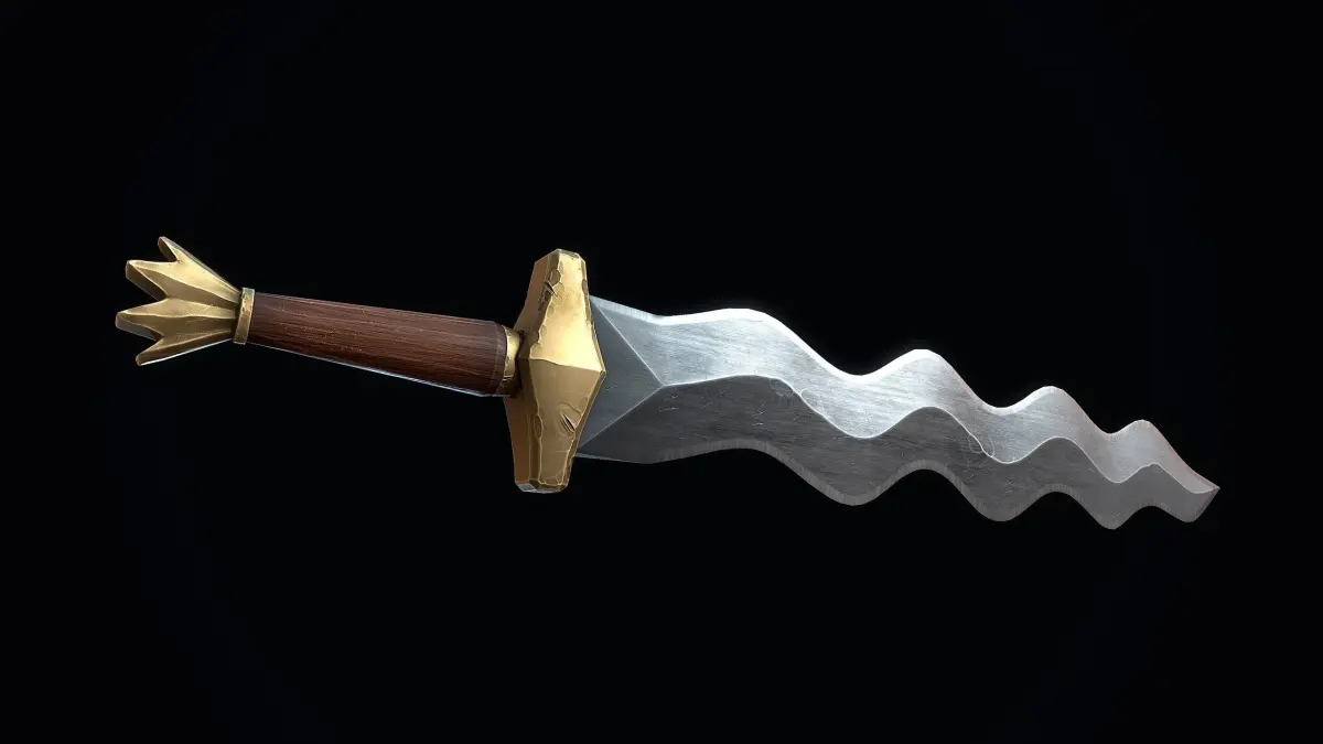 A low-poly 3D model of a Short Flamberge Sword doesn't contain n-gons and has optimal topology. The archive includes such 2K textures: base color map, metalness map, normal map (OpenGL), and roughness map. Images and video were rendered in Marmoset.