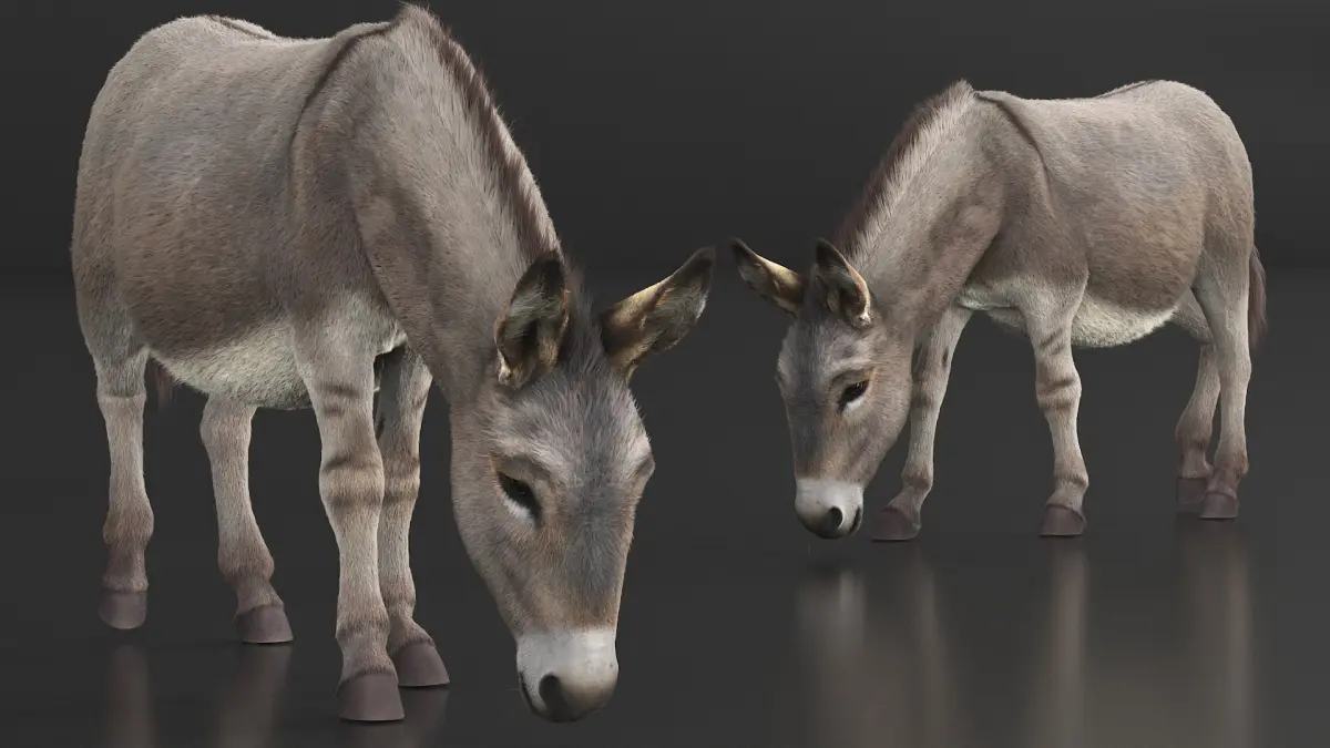 Short-Haired Pack Donkey Fur Rigged for Maya is a three-dimensional model of donkey, showcasing the animal in a lifelike manner, perfect for both educational and decorative purposes.