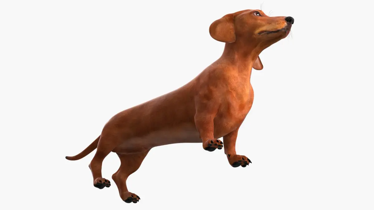 Short-Legged Red Dachshund is a three-dimensional model of dachshund, a popular breed known for its distinctive long body and short legs, often referred to as a "wiener dog."