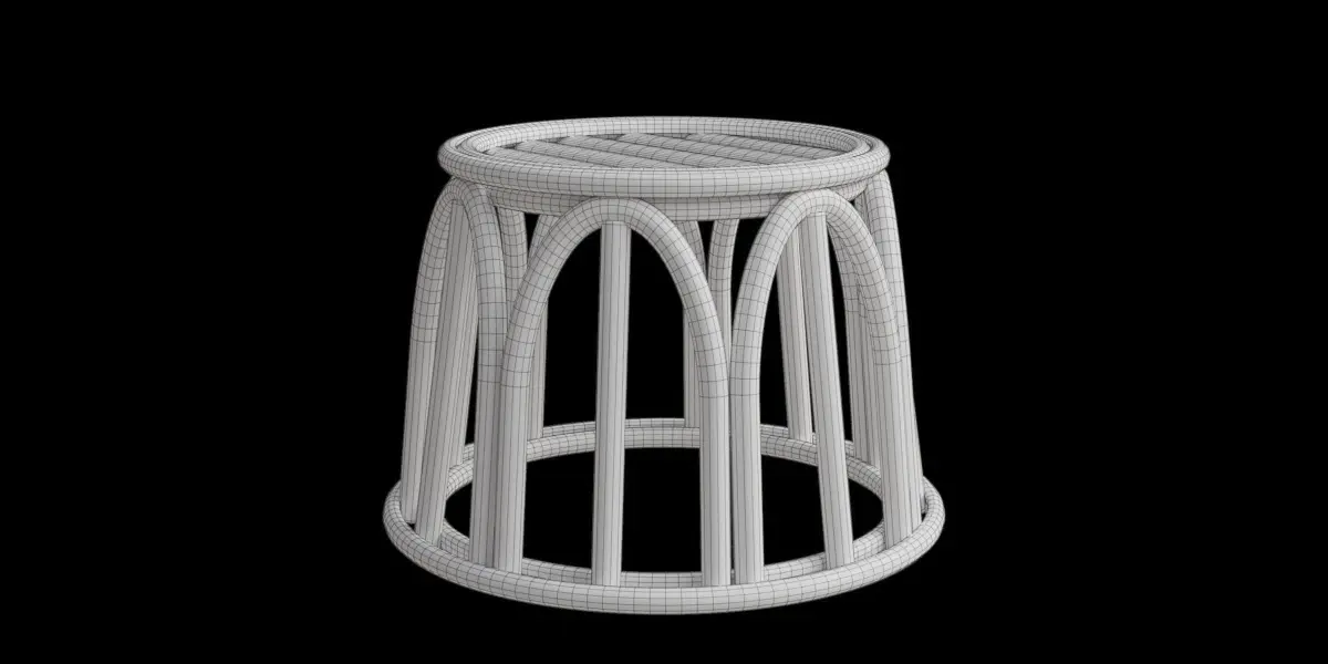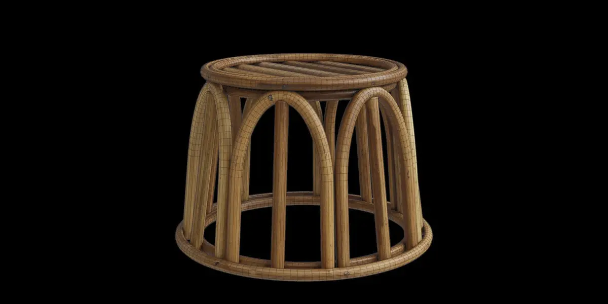 This model is a short plant stand made from rattanIt's suitable for a open living room with plants decorations or a green style, natural style roomThe file consists of blend file format with 4k resolution baked textures:_ Base color_ Metalness_ Roughness_ Normal