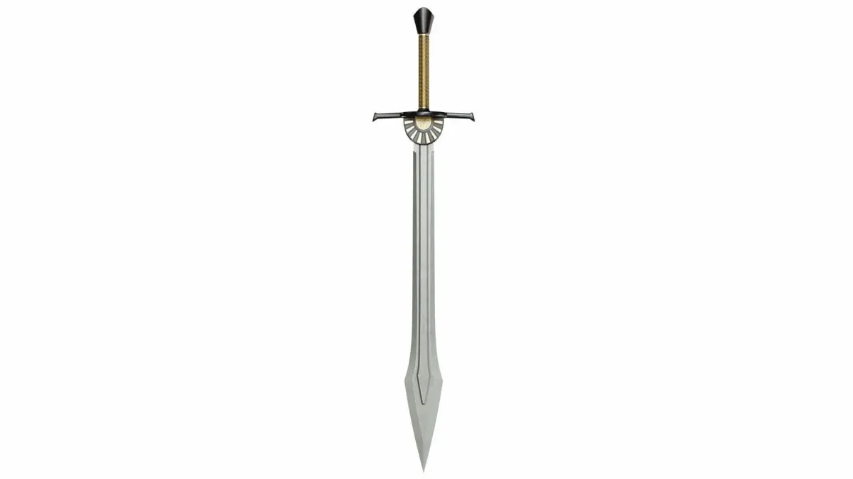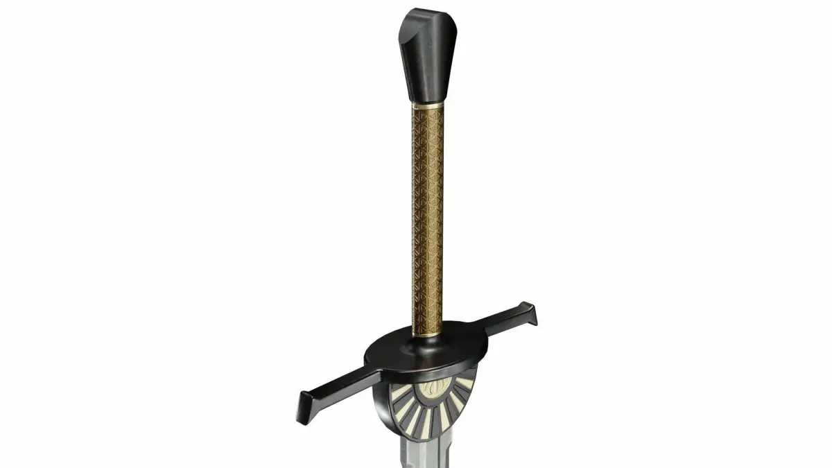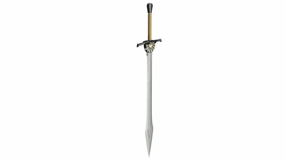The pivot point of the object is in the handle of sword.